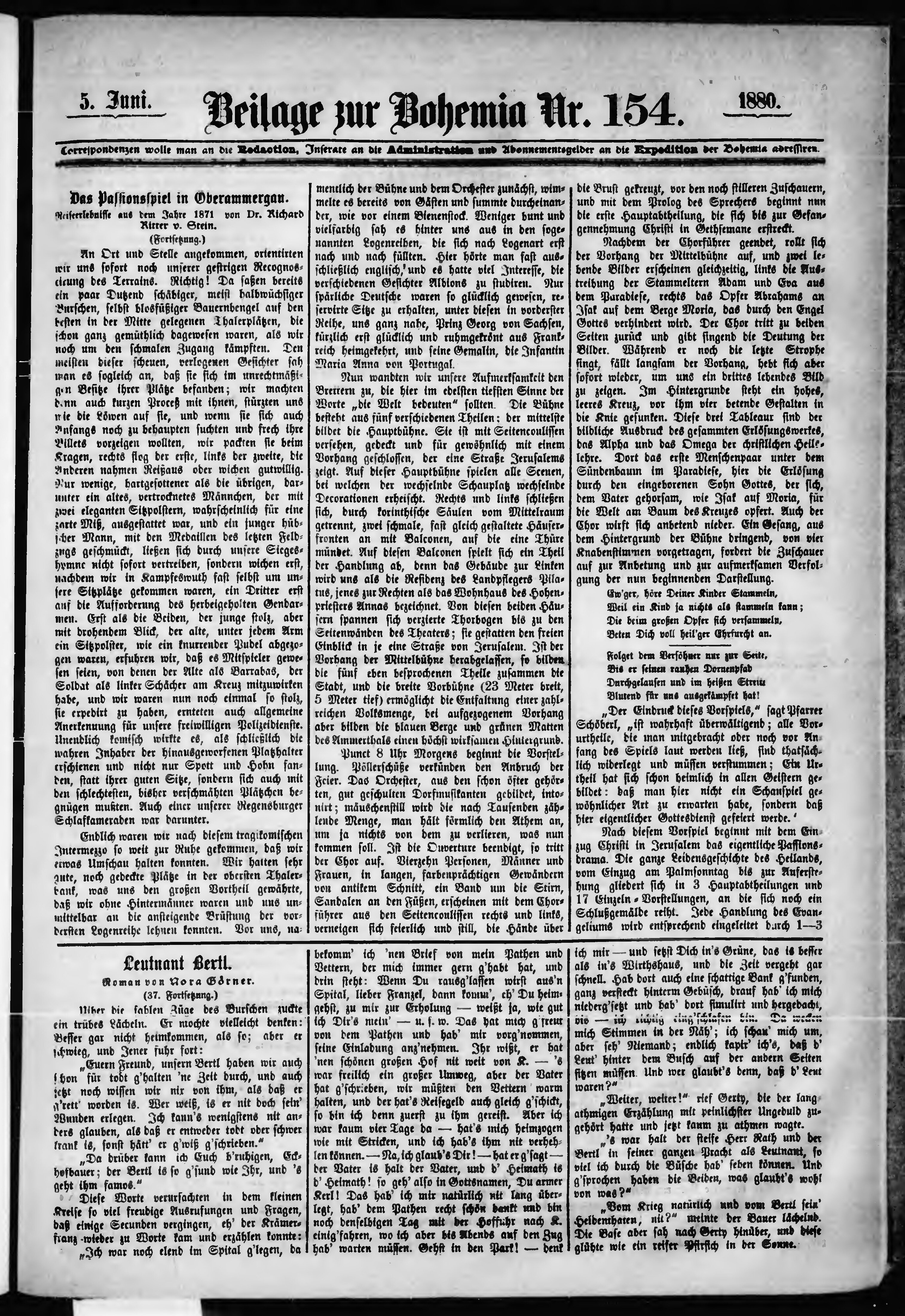 * Datum vydání výtisku: 5.6.1880 Číslo výtisku: 154 Typ výtisku: příloha