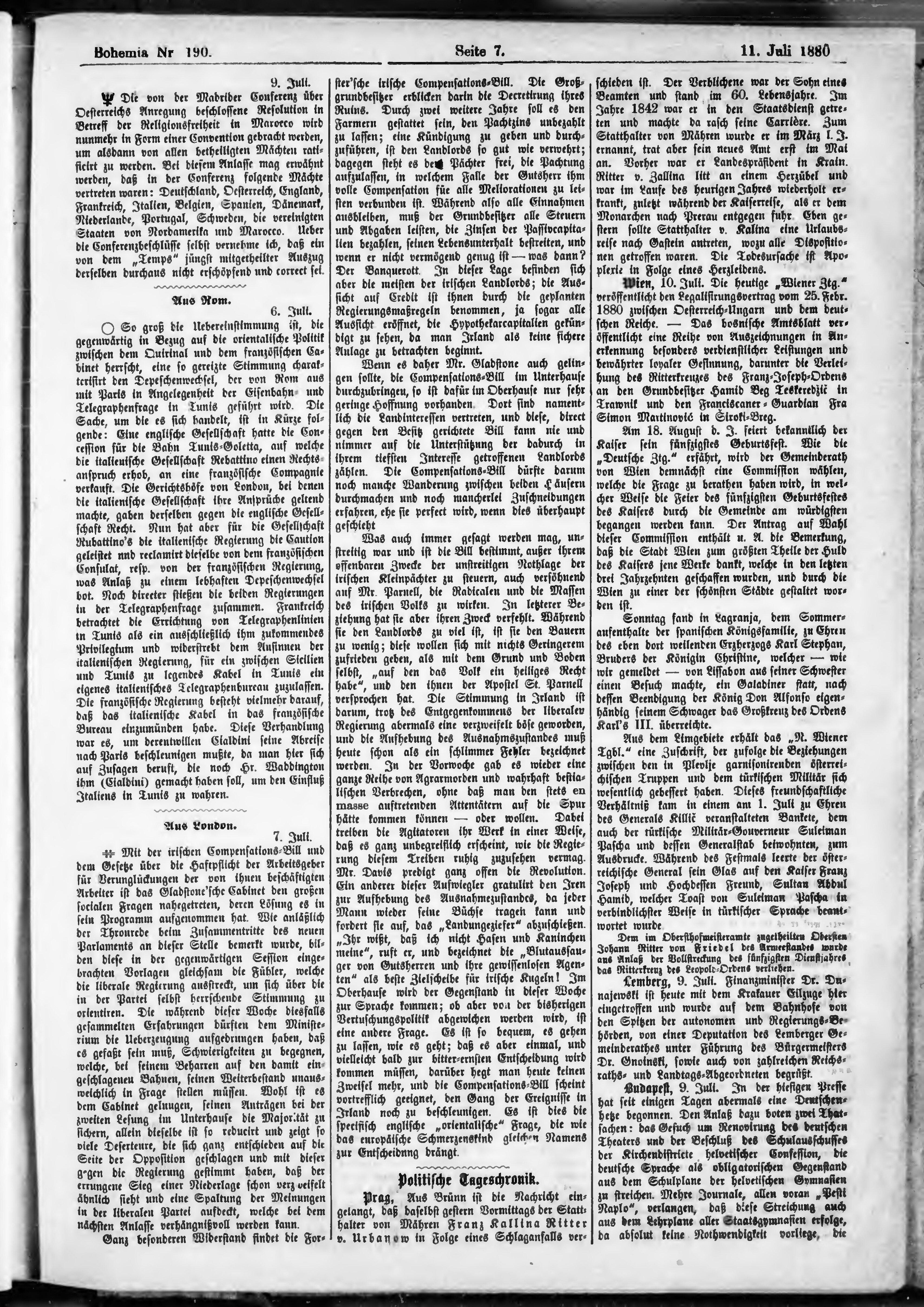 * Datum vydání výtisku: 11.7.1880 Číslo výtisku: 190
