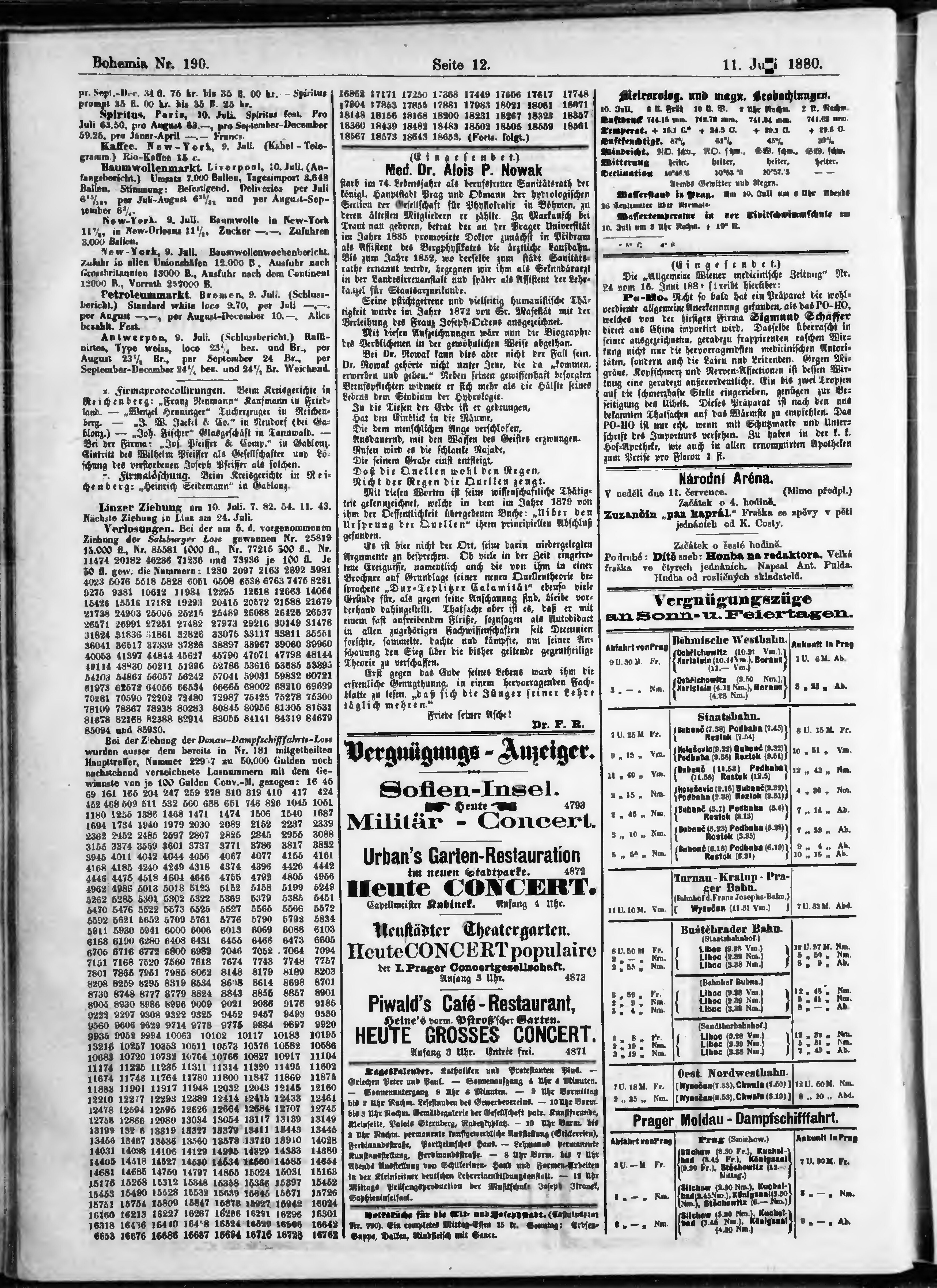 * Datum vydání výtisku: 11.7.1880 Číslo výtisku: 190