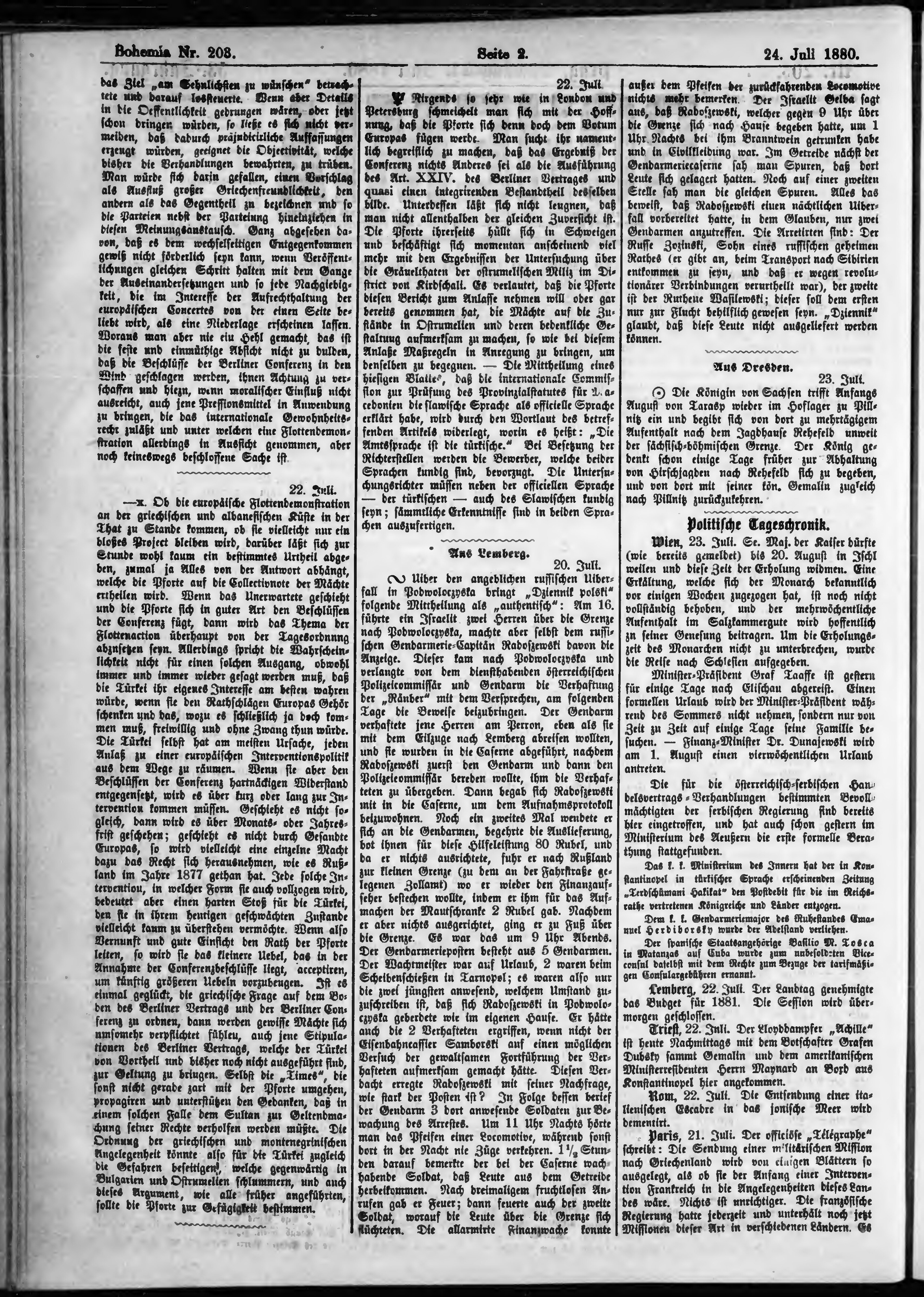 * Datum vydání výtisku: 24.7.1880 Číslo výtisku: 203