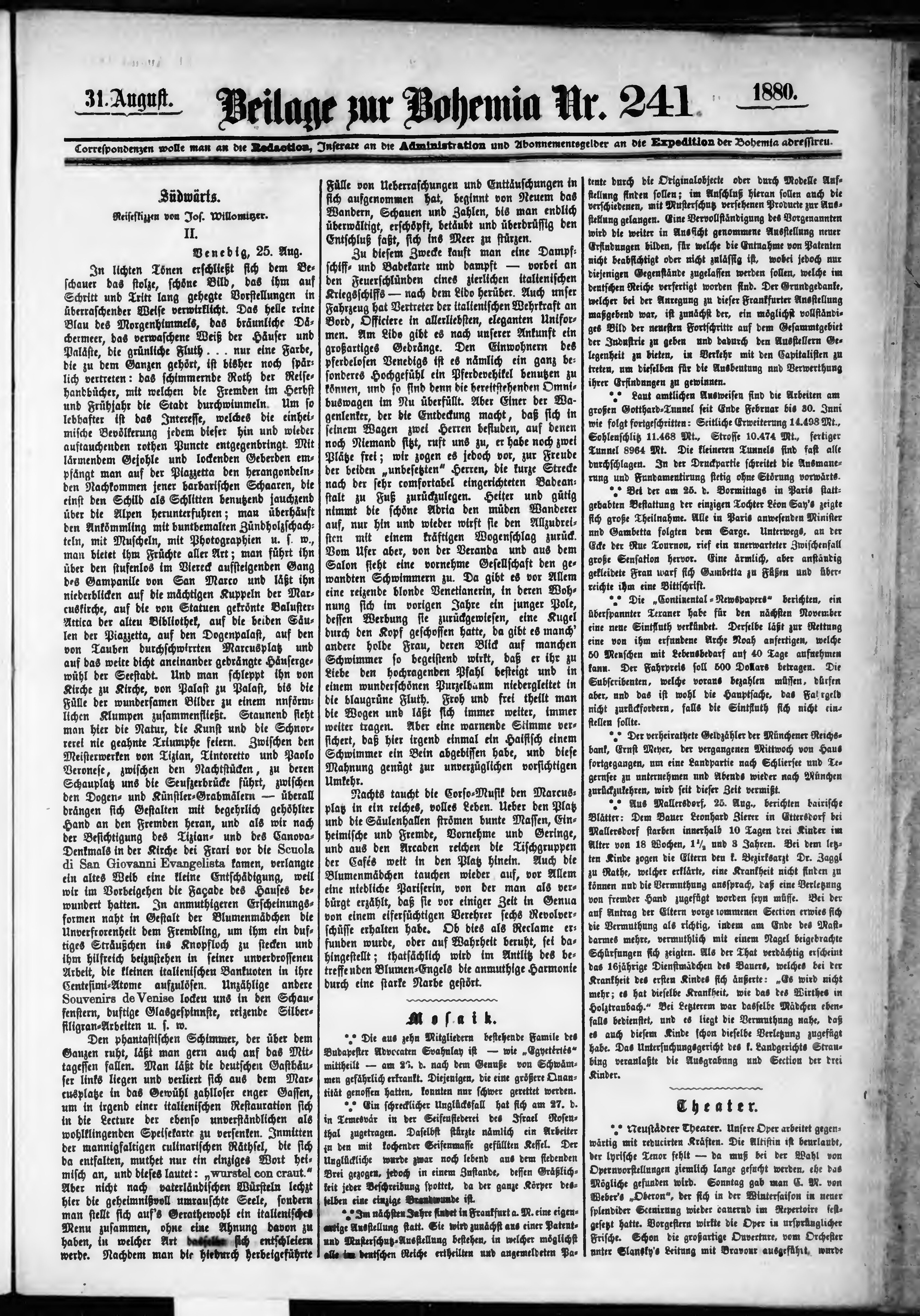 * Datum vydání výtisku: 31.8.1880 Číslo výtisku: 241 Typ výtisku: příloha