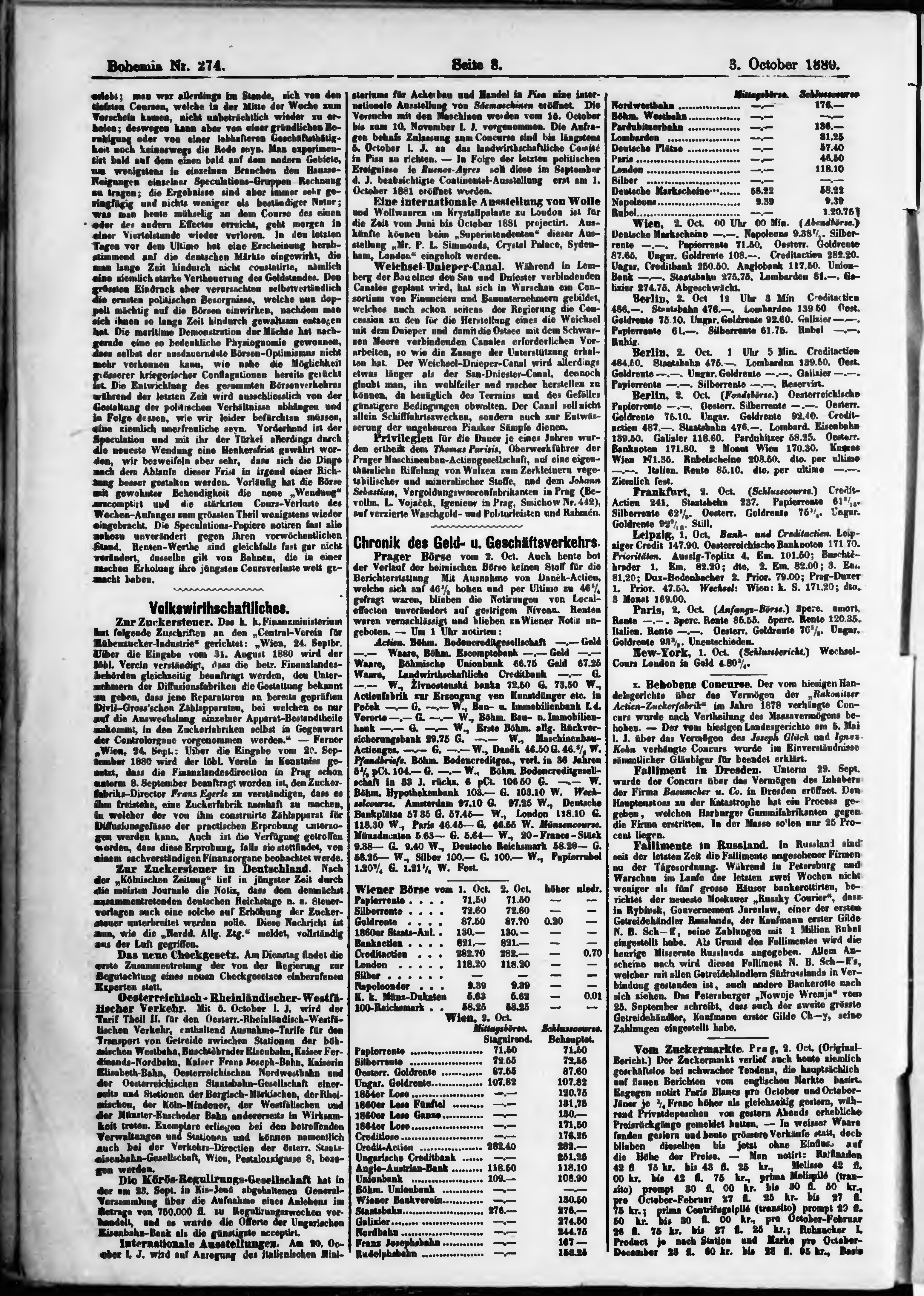 * Datum vydání výtisku: 3.10.1880 Číslo výtisku: 274