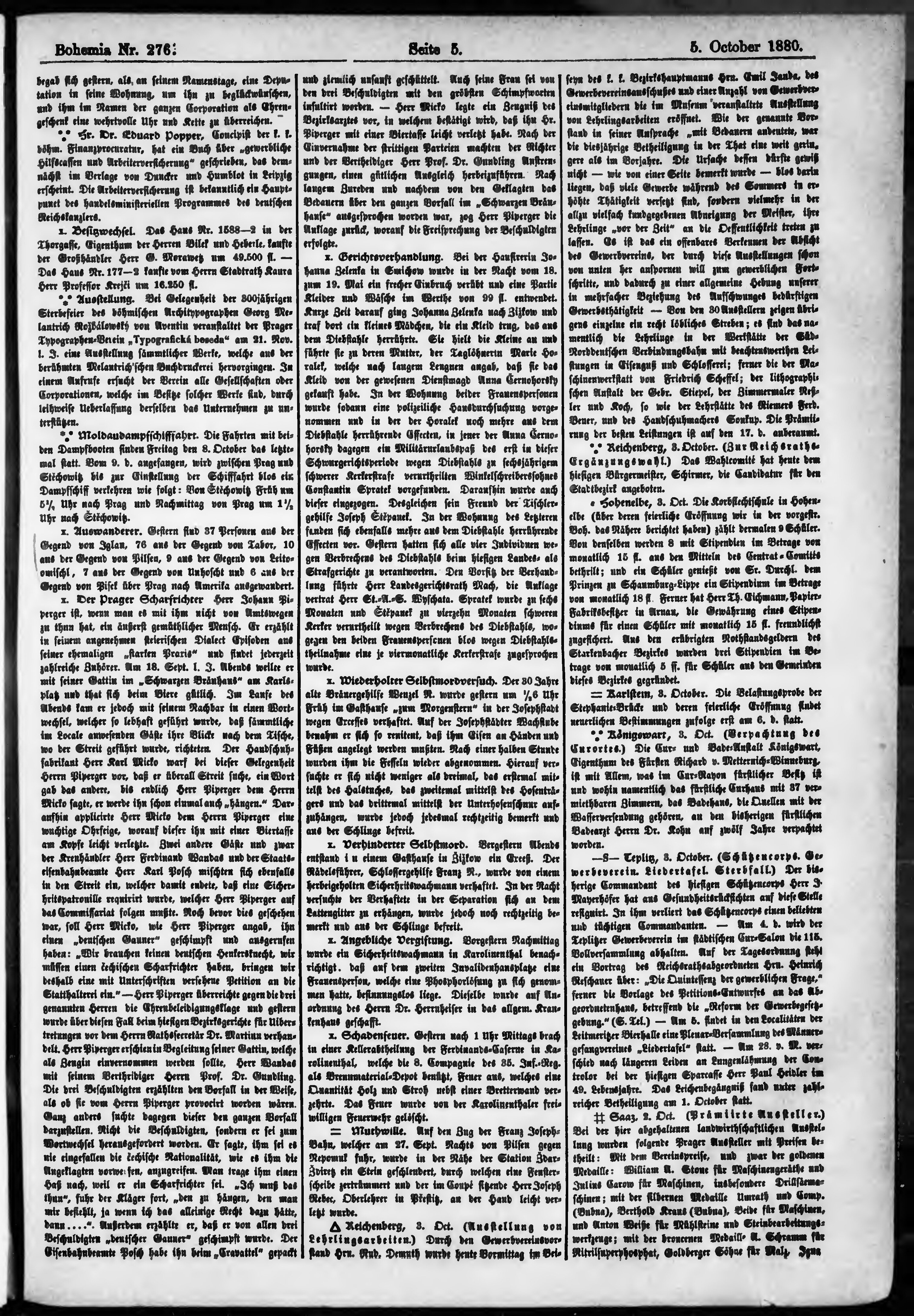 * Datum vydání výtisku: 5.10.1880 Číslo výtisku: 276