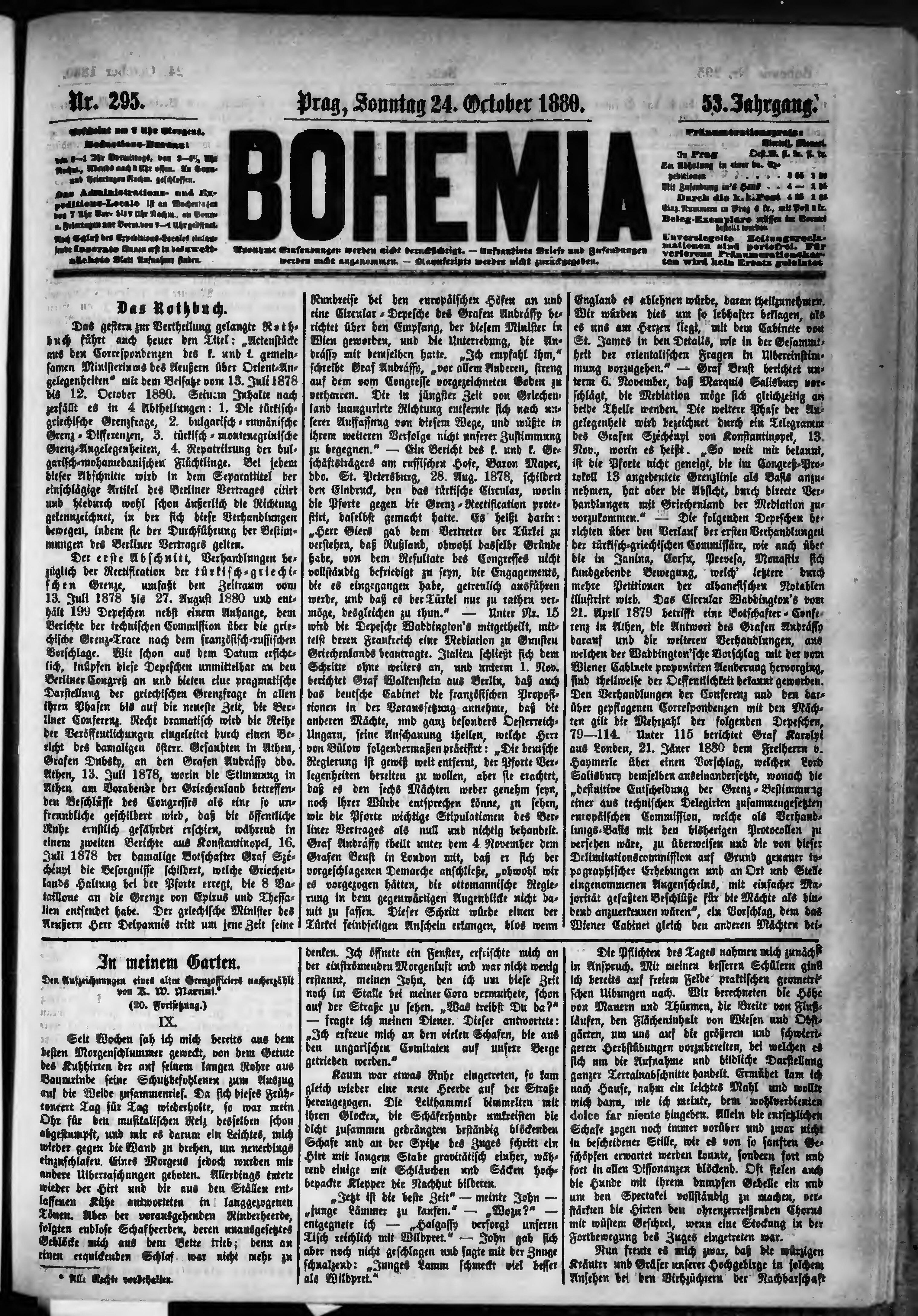 * Datum vydání výtisku: 24.10.1880 Číslo výtisku: 295