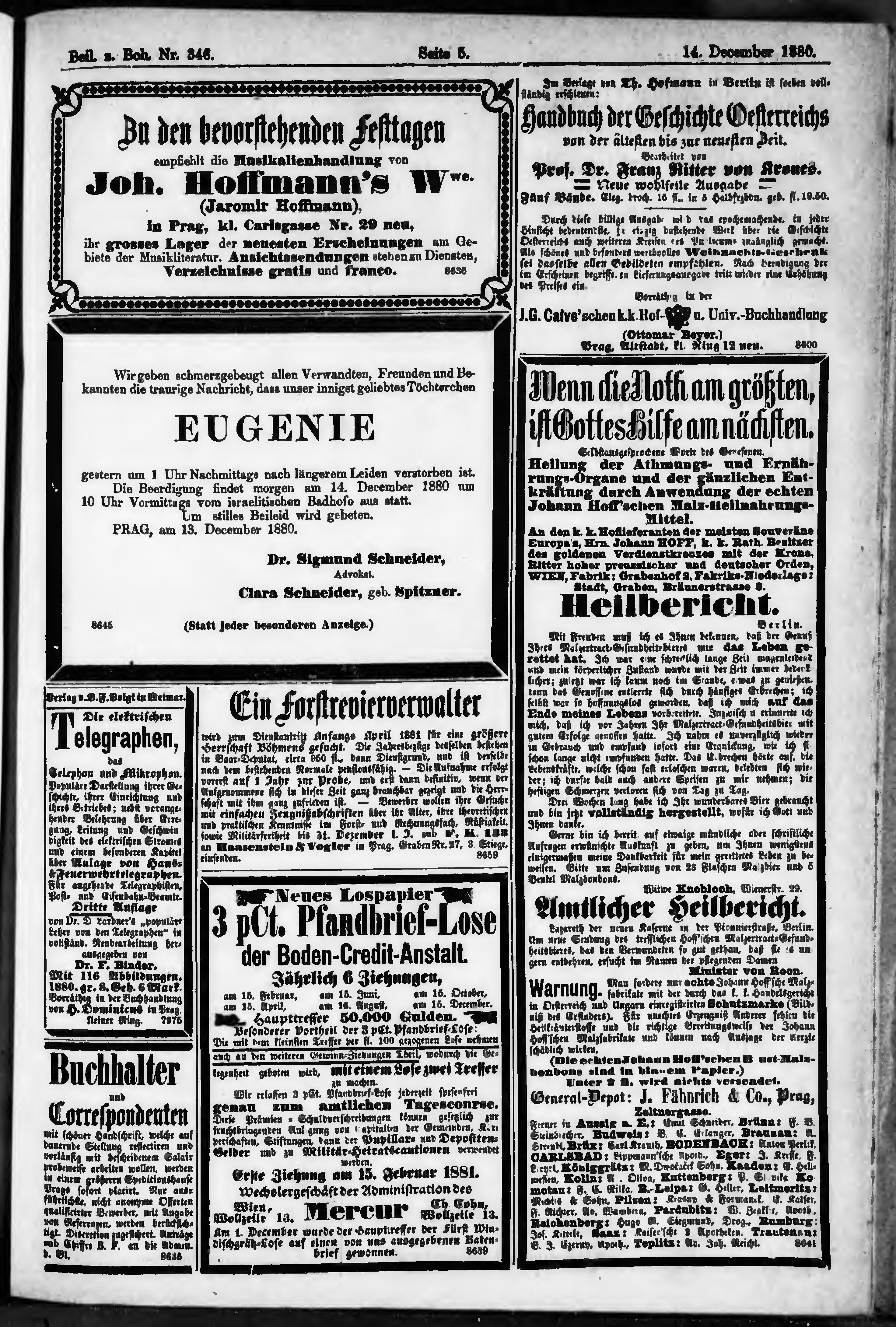 * Datum vydání výtisku: 14.12.1880 Číslo výtisku: 346 Typ výtisku: příloha