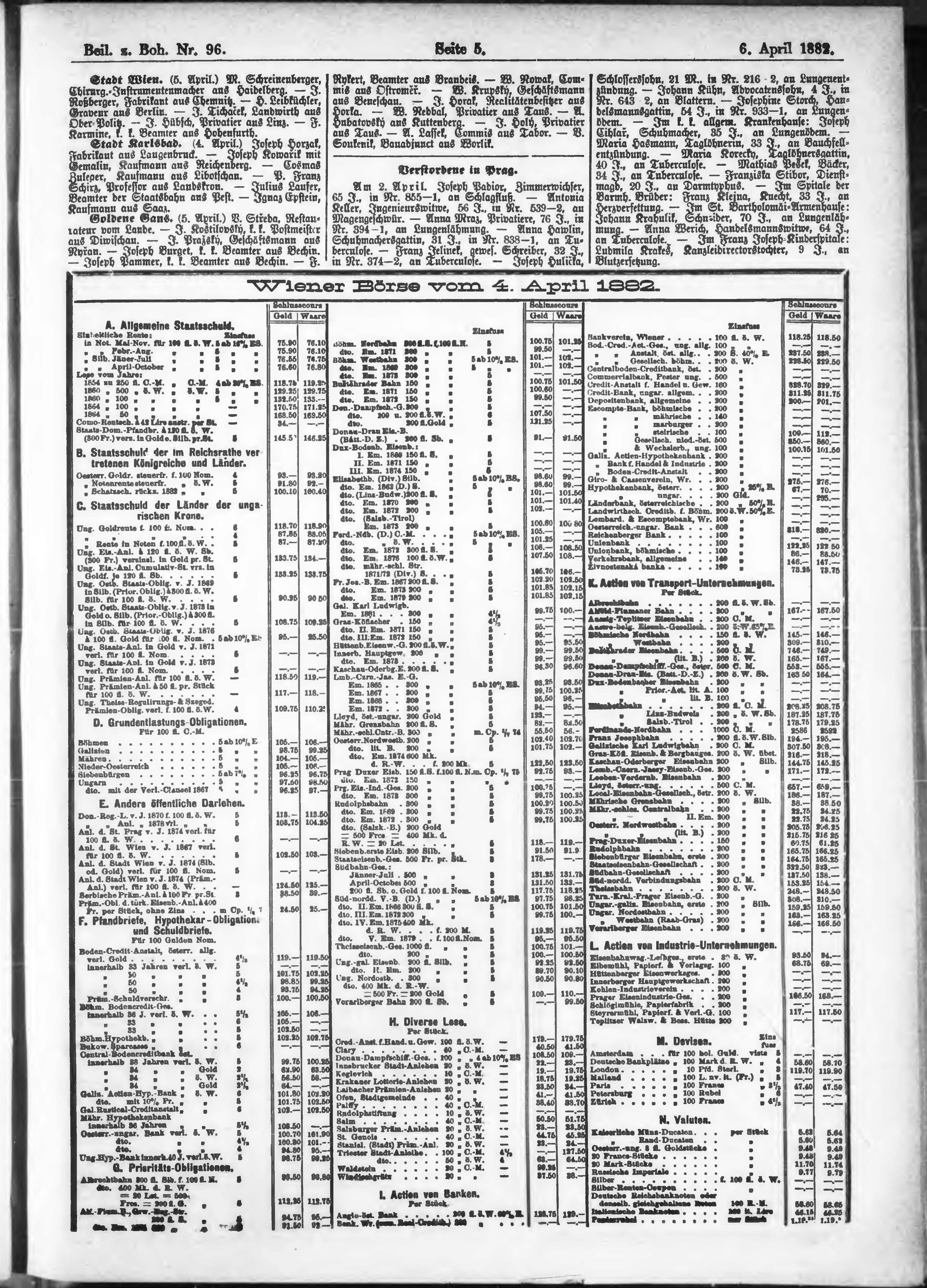 * Datum vydání výtisku: 6.4.1882 Číslo výtisku: 96 Typ výtisku: příloha