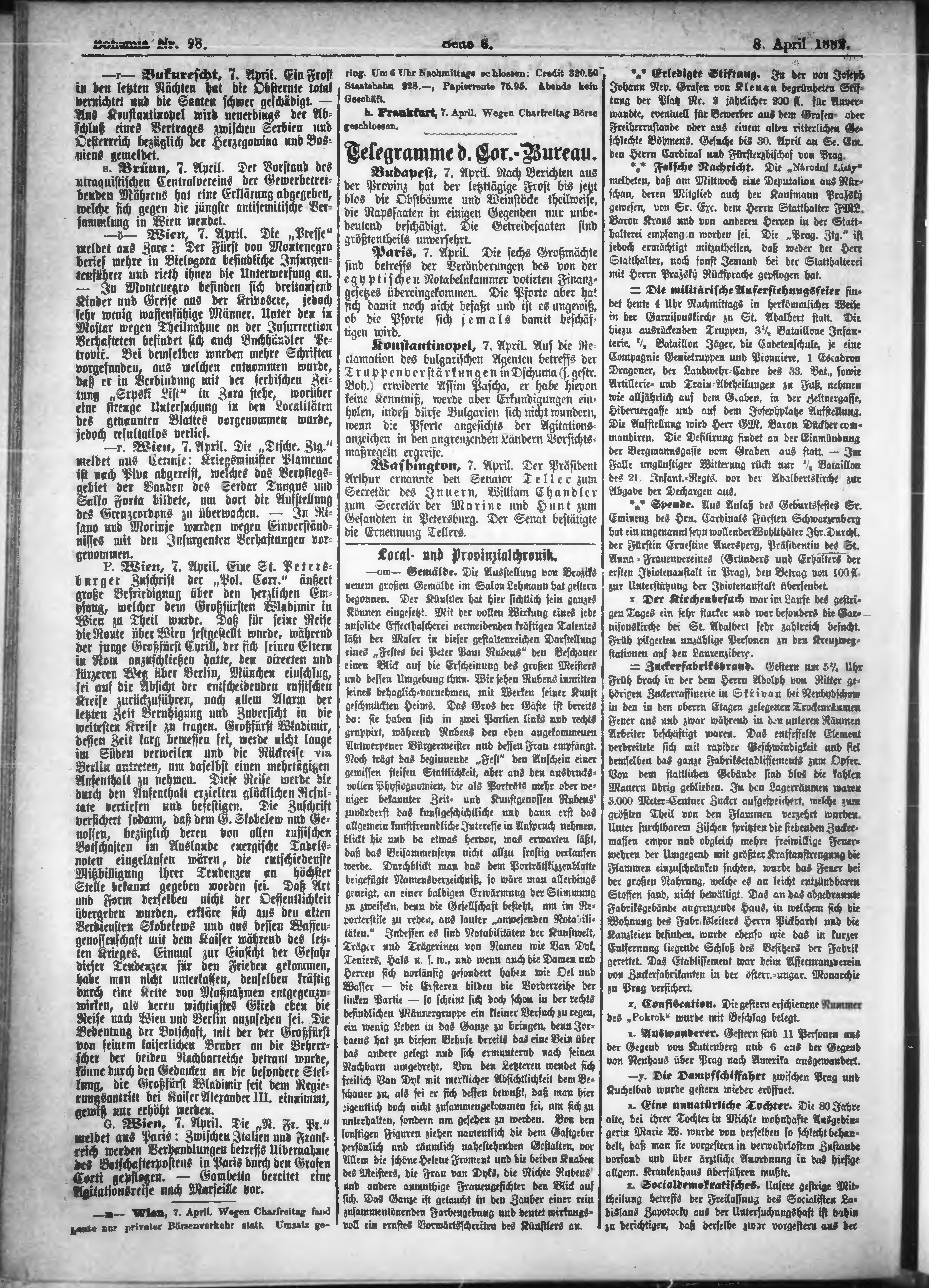 * Datum vydání výtisku: 8.4.1882 Číslo výtisku: 98