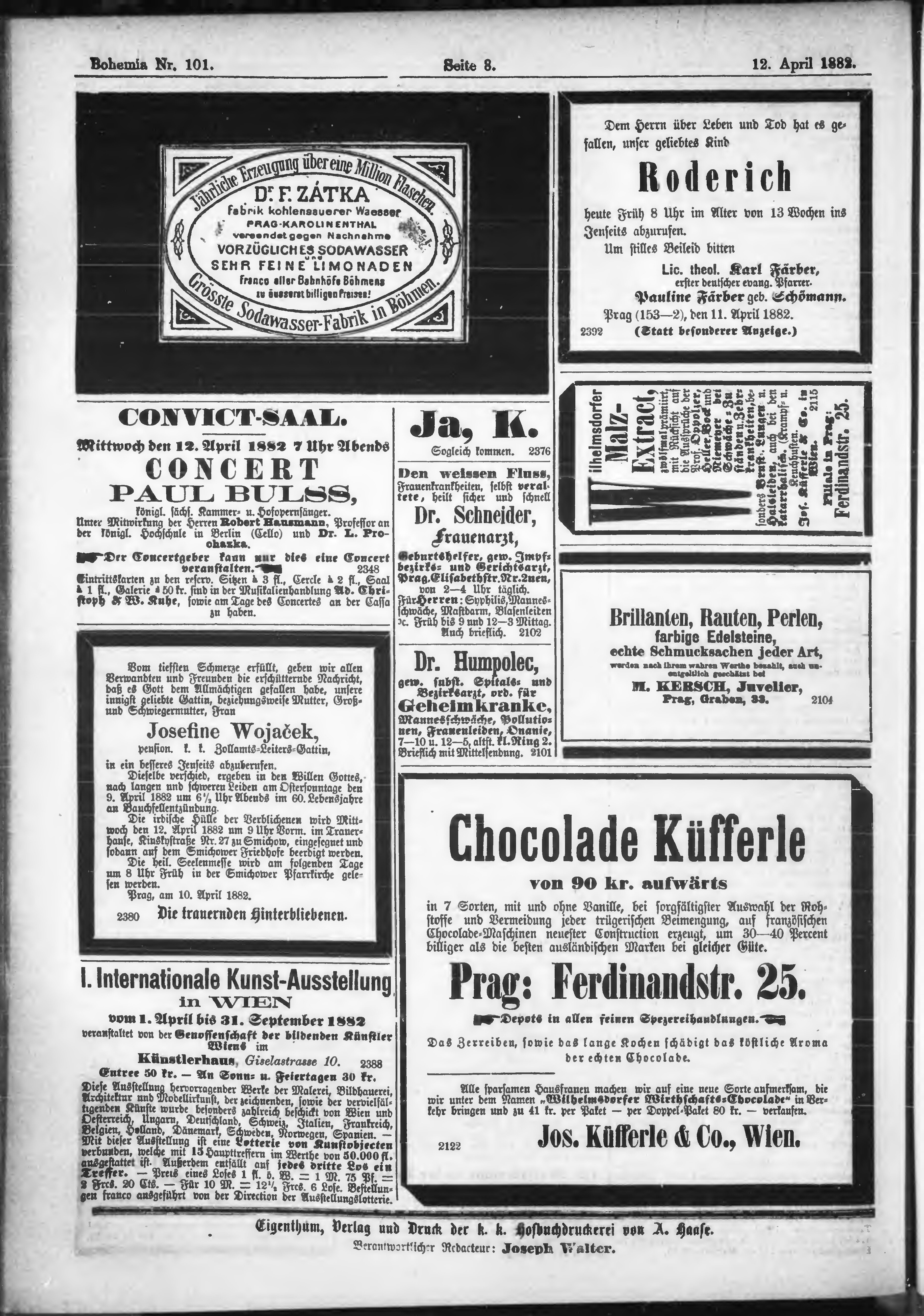 * Datum vydání výtisku: 12.4.1882 Číslo výtisku: 101
