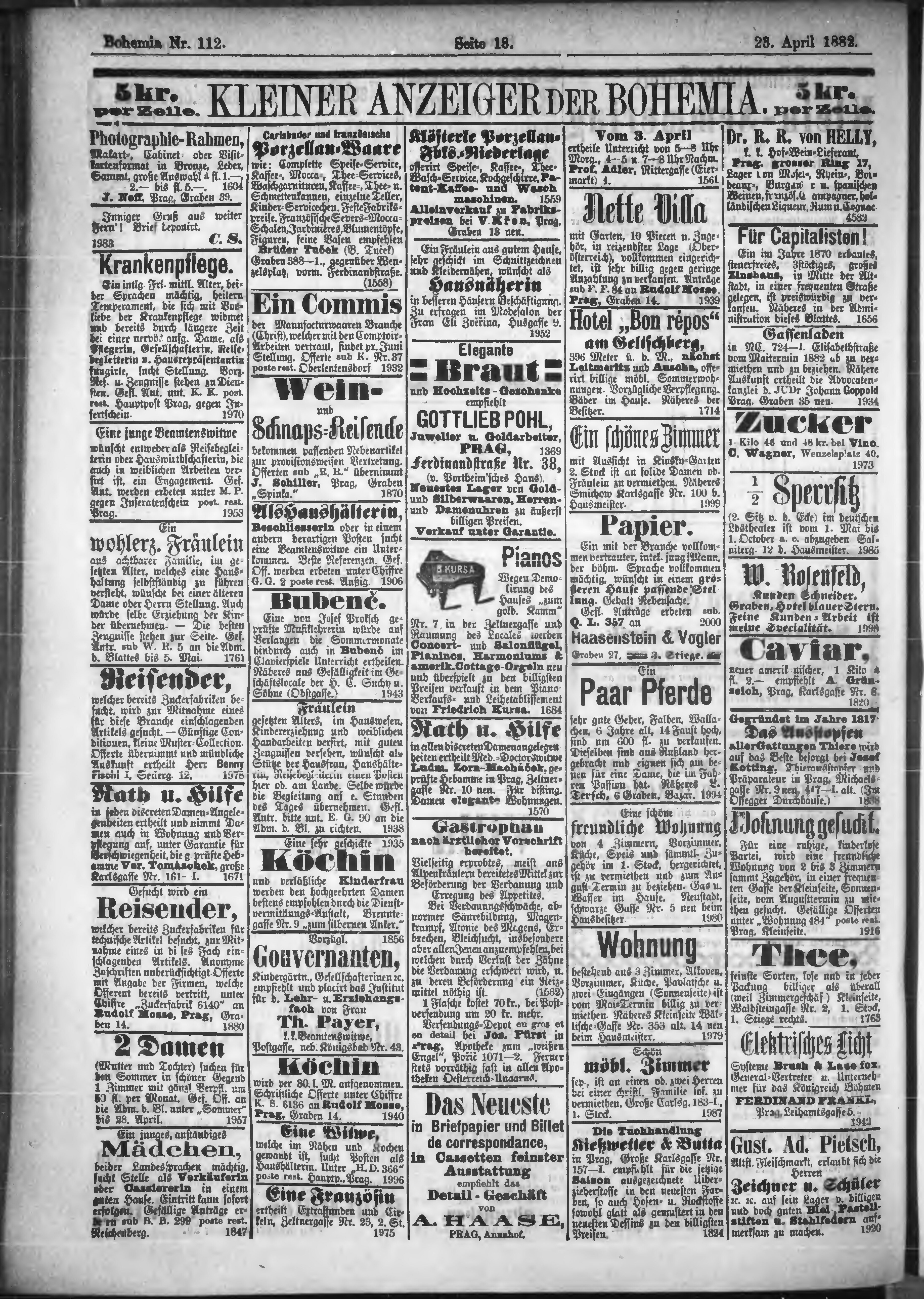 * Datum vydání výtisku: 23.4.1882 Číslo výtisku: 112