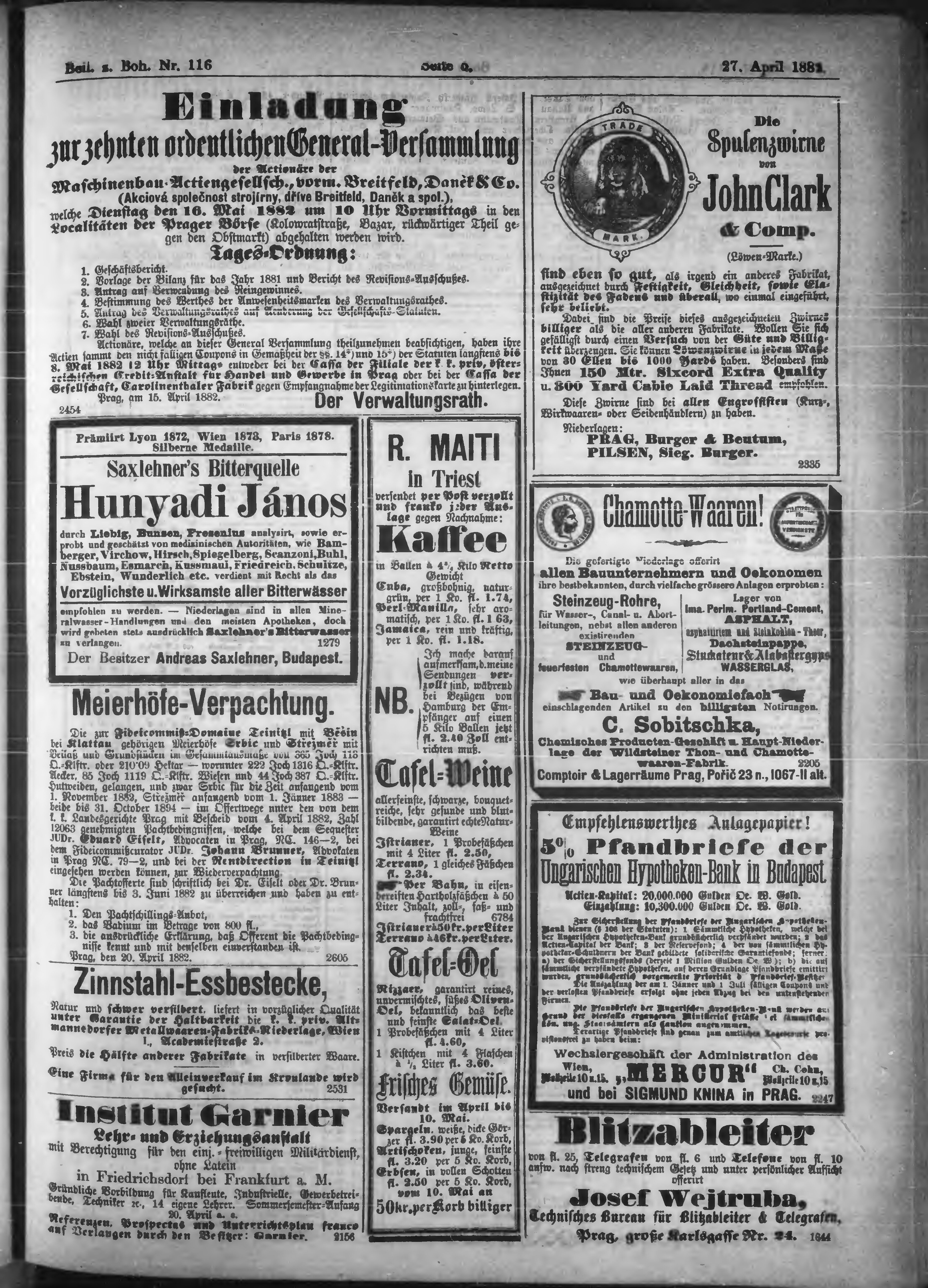 * Datum vydání výtisku: 27.4.1882 Číslo výtisku: 116 Typ výtisku: příloha