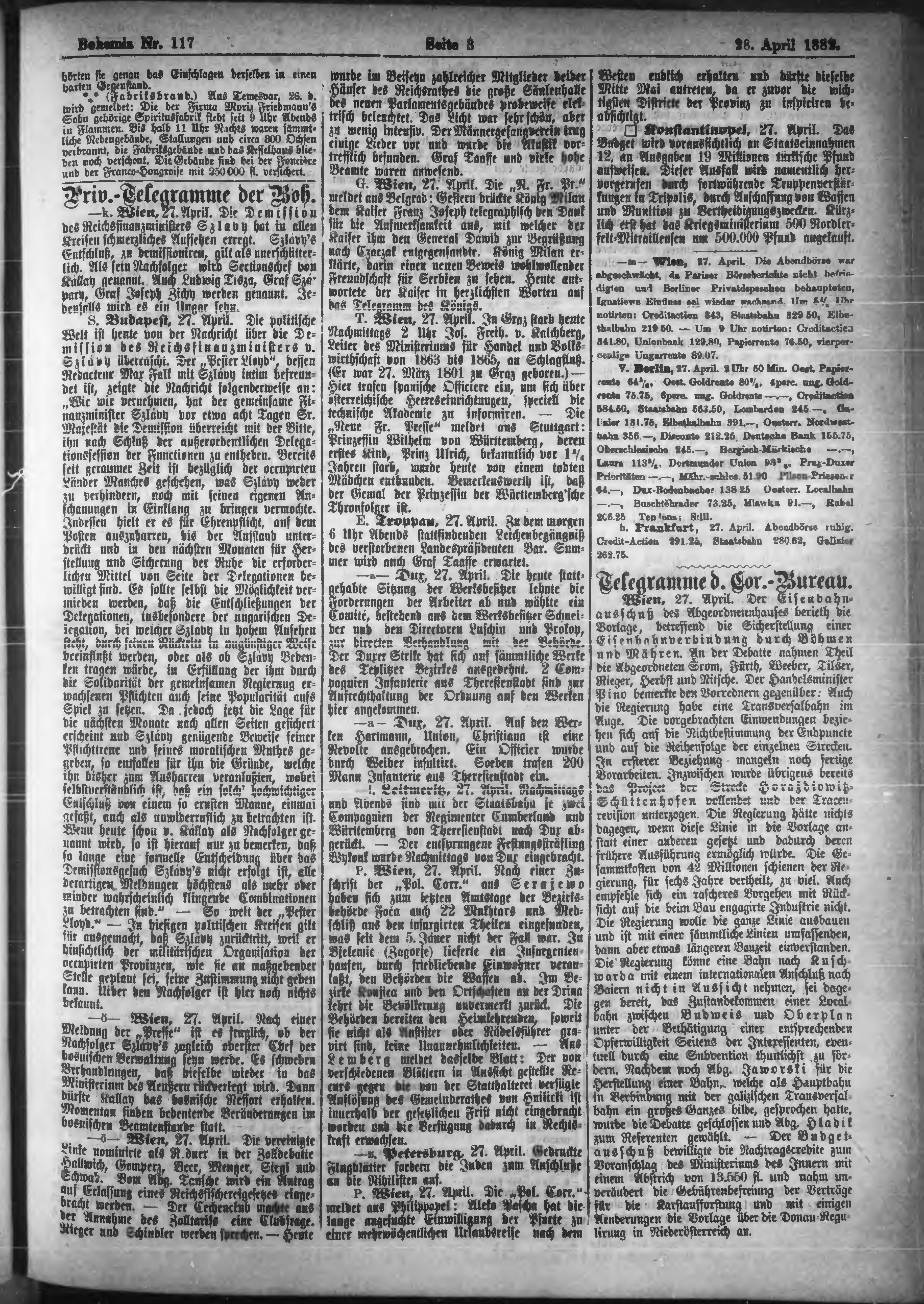 * Datum vydání výtisku: 28.4.1882 Číslo výtisku: 117