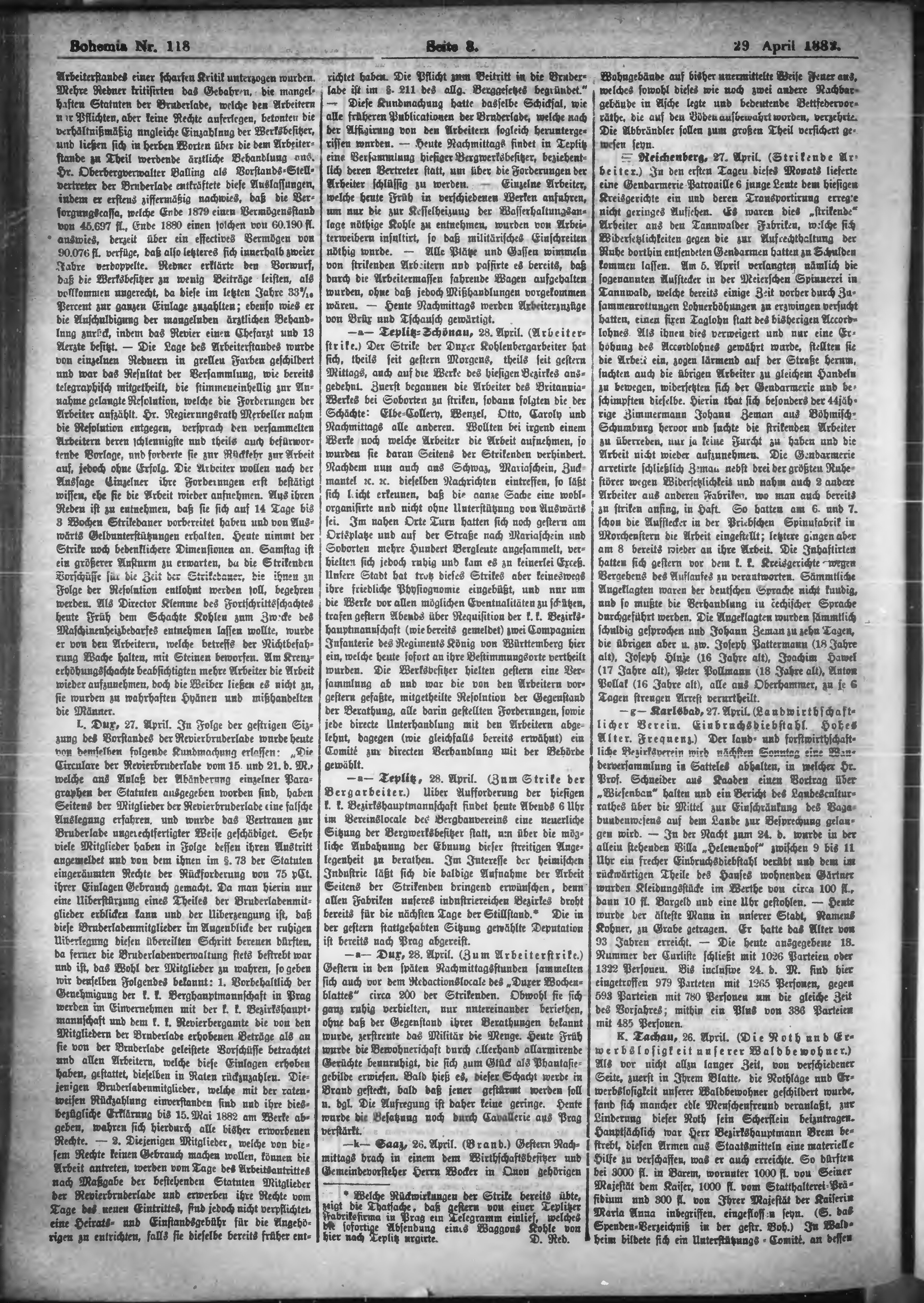* Datum vydání výtisku: 29.4.1882 Číslo výtisku: 118