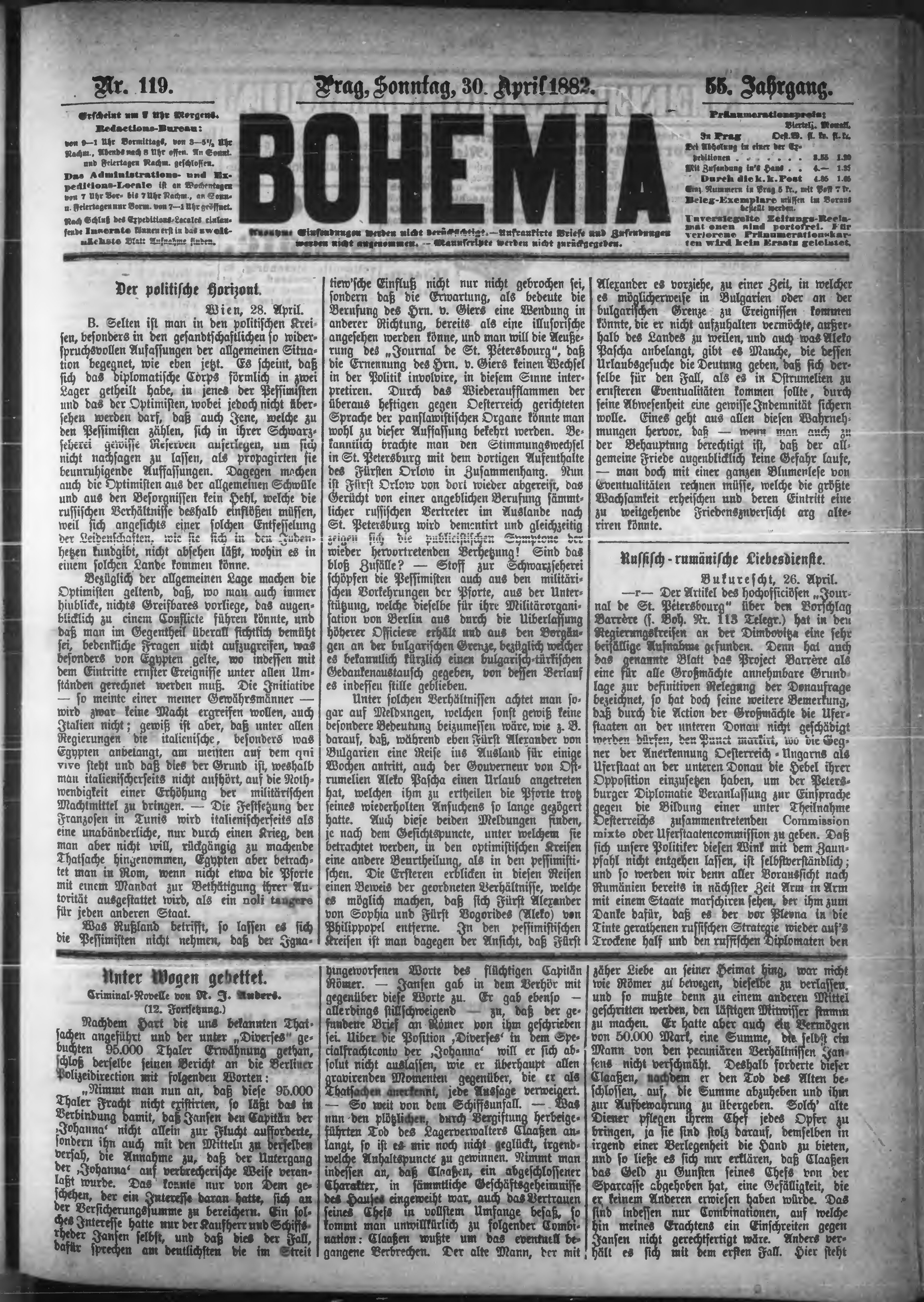 * Datum vydání výtisku: 30.4.1882 Číslo výtisku: 119