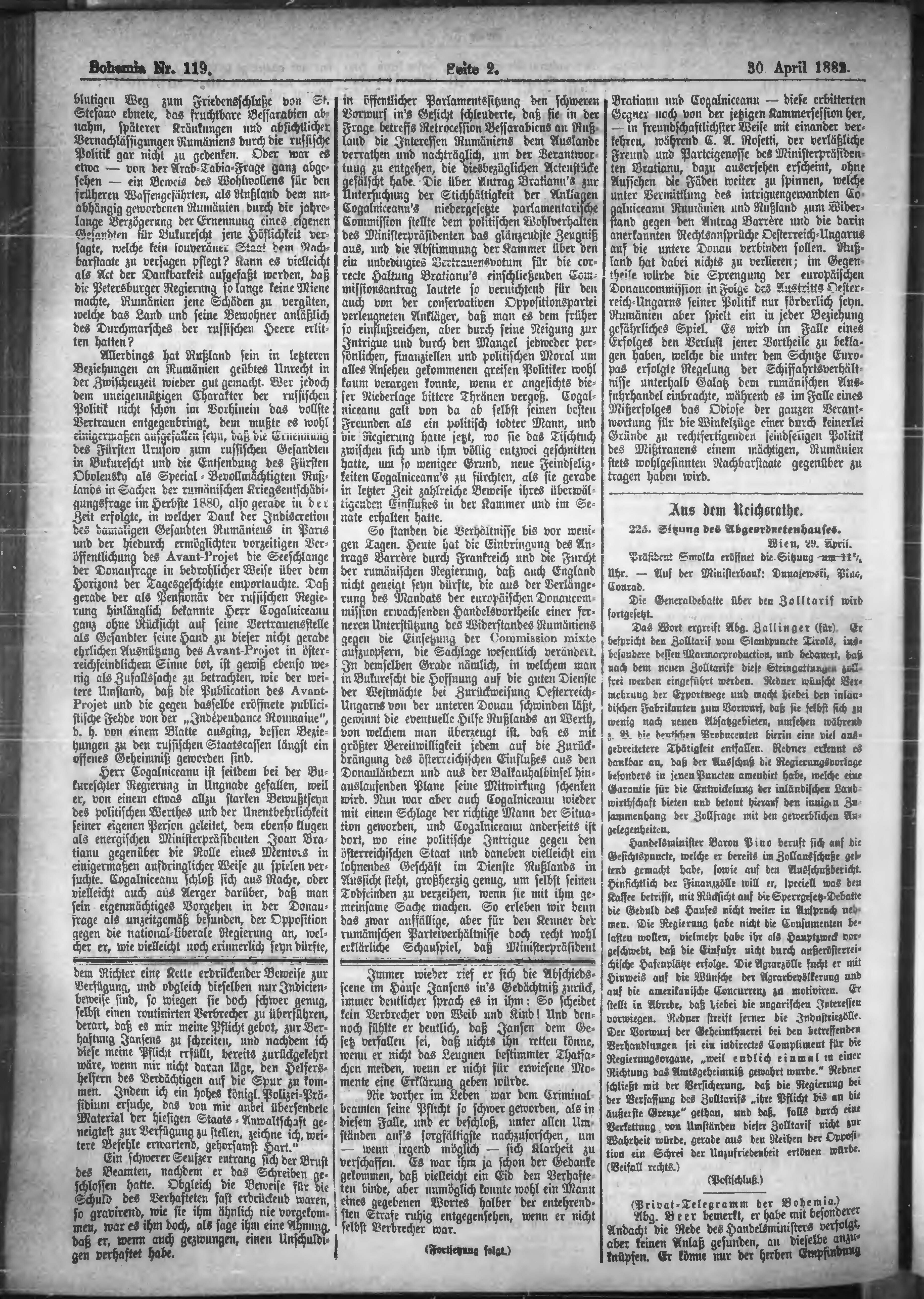 * Datum vydání výtisku: 30.4.1882 Číslo výtisku: 119