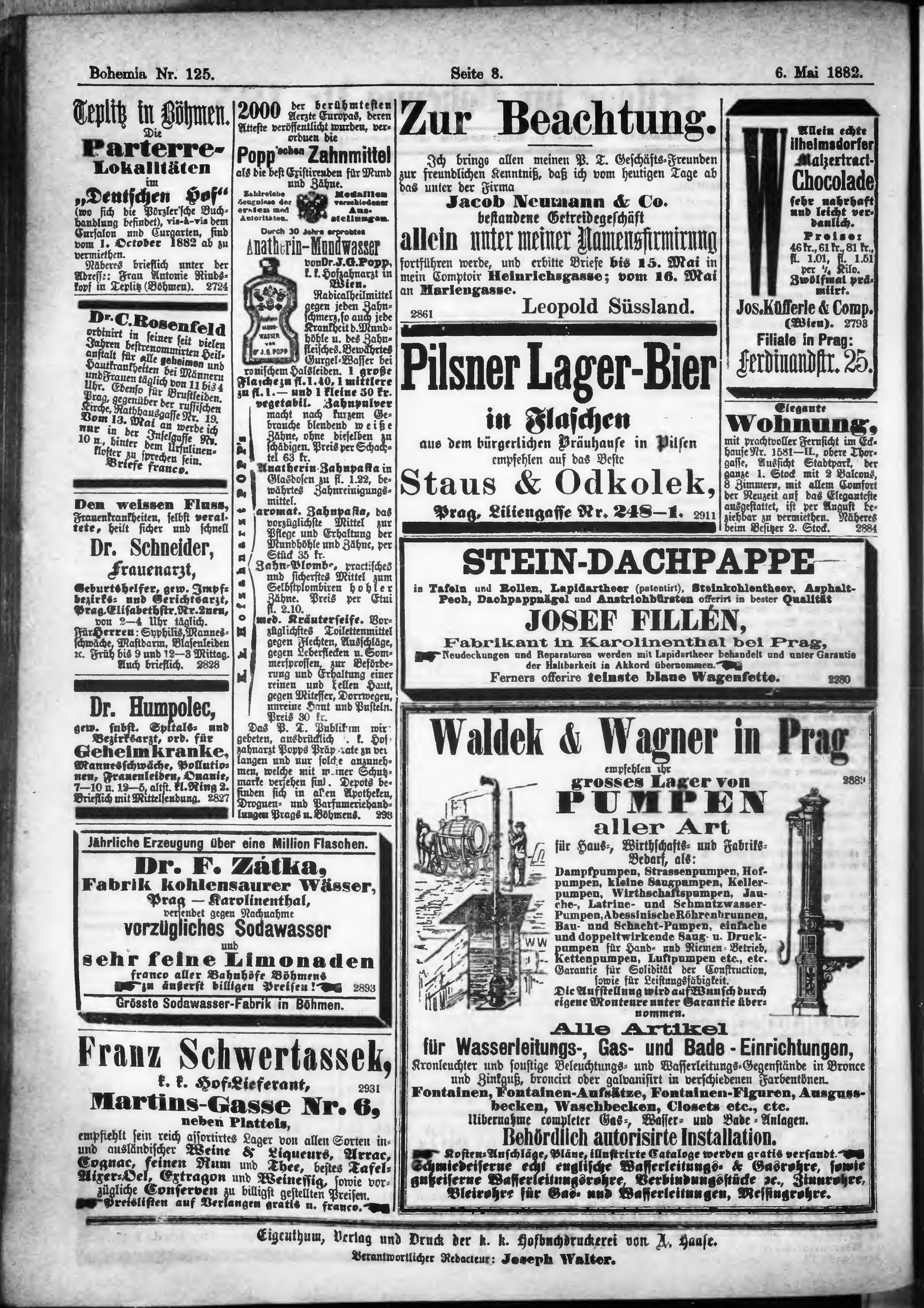 * Datum vydání výtisku: 6.5.1882 Číslo výtisku: 125