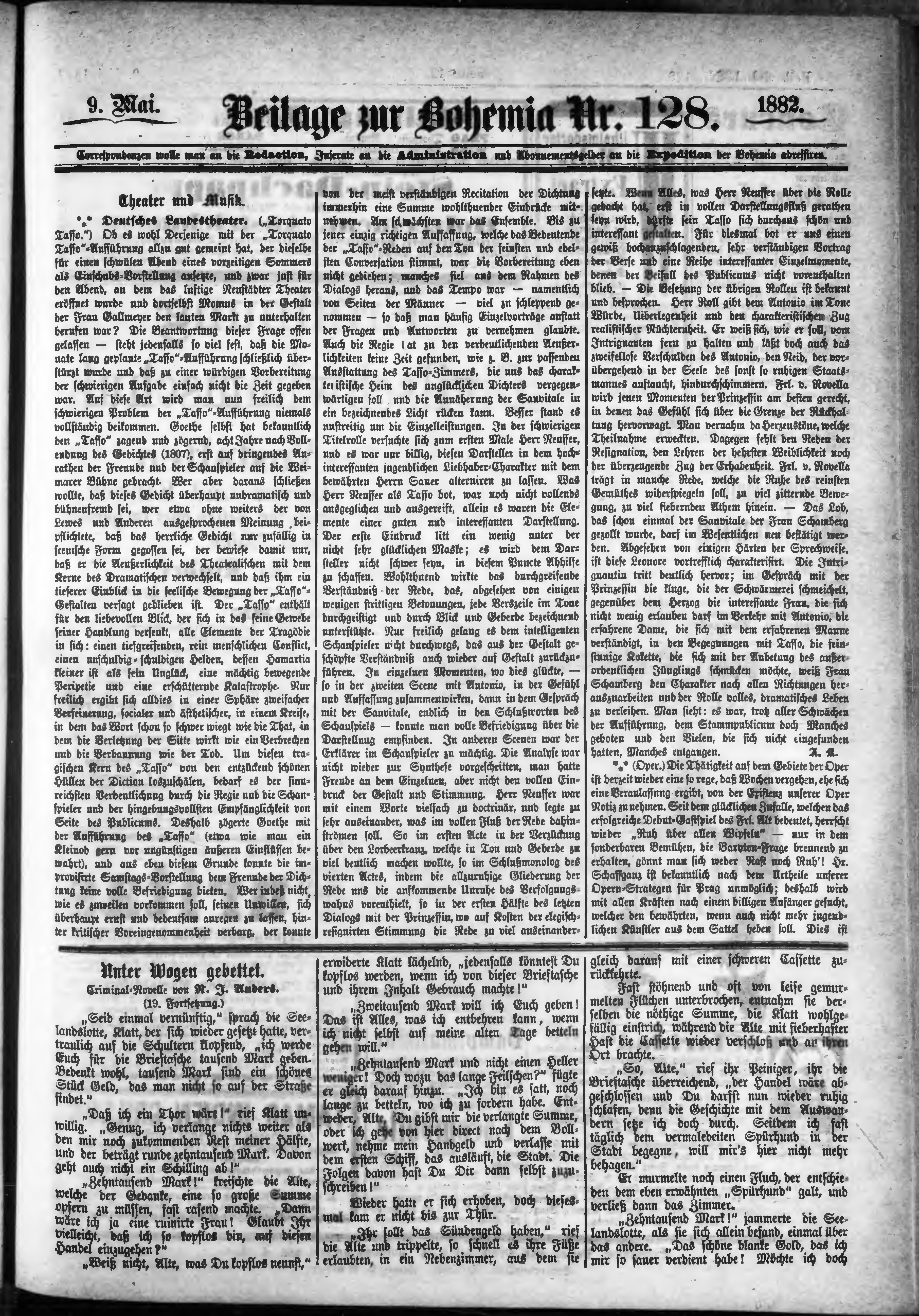 * Datum vydání výtisku: 9.5.1882 Číslo výtisku: 128 Typ výtisku: příloha