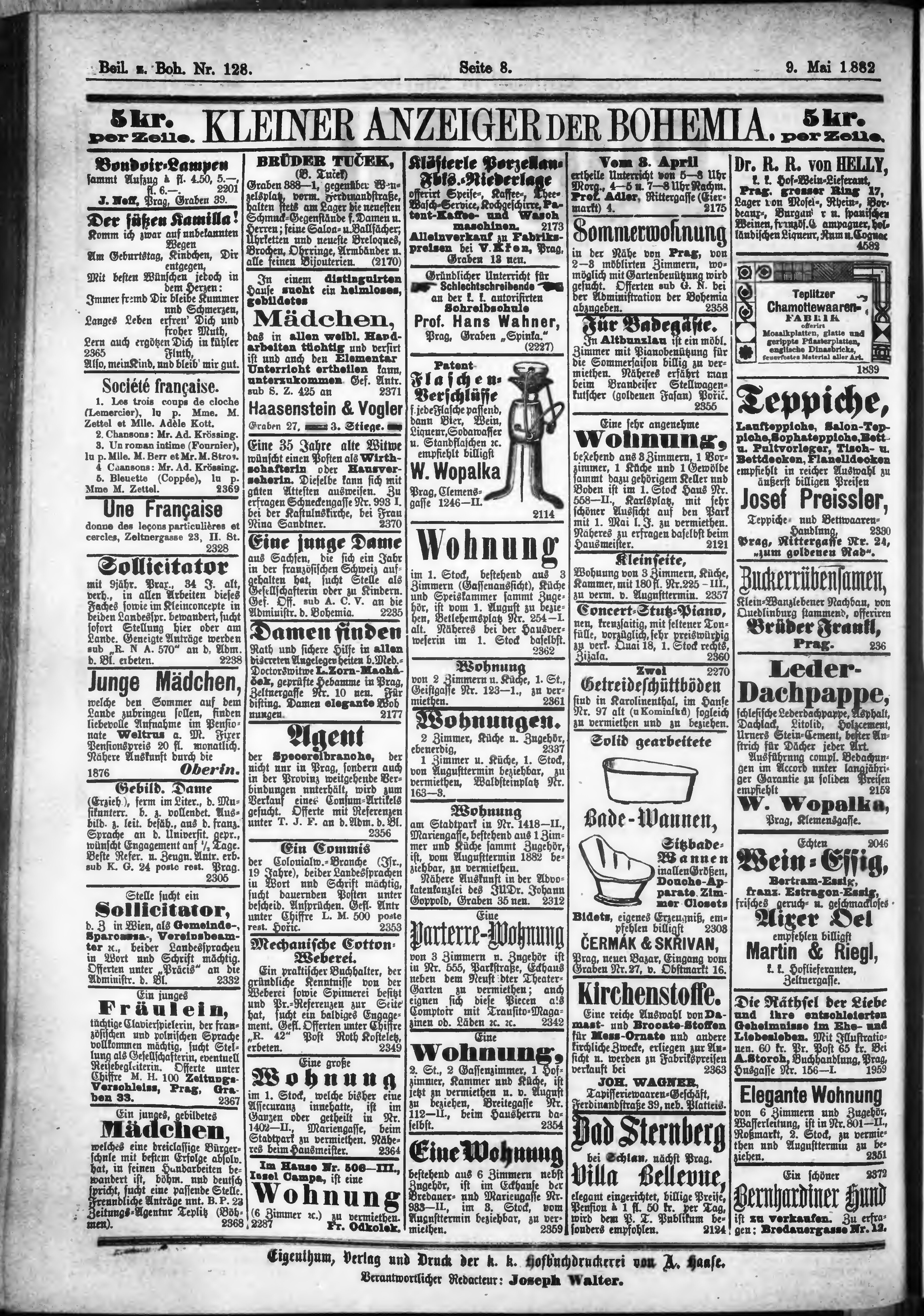 * Datum vydání výtisku: 9.5.1882 Číslo výtisku: 128 Typ výtisku: příloha