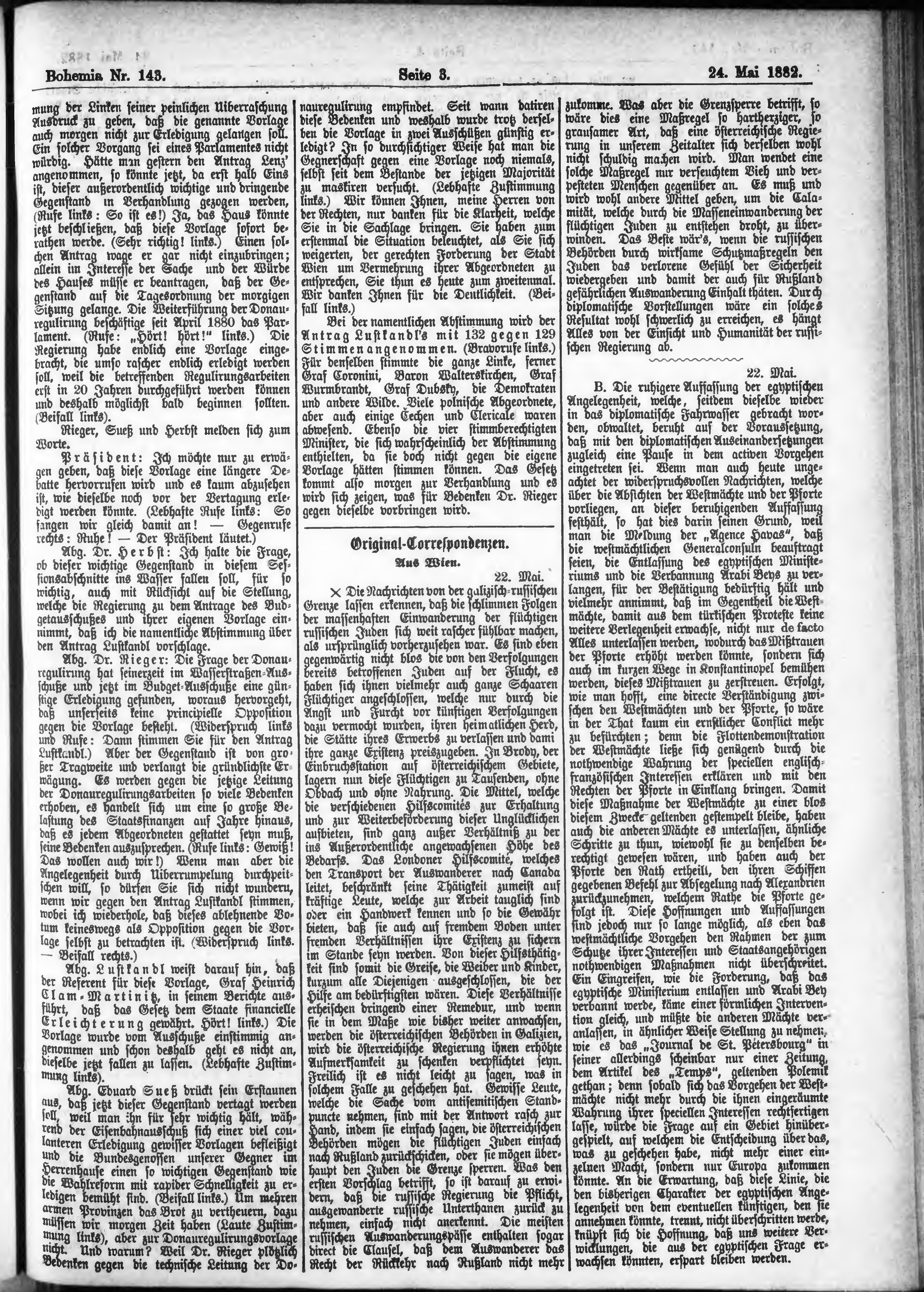 * Datum vydání výtisku: 24.5.1882 Číslo výtisku: 143