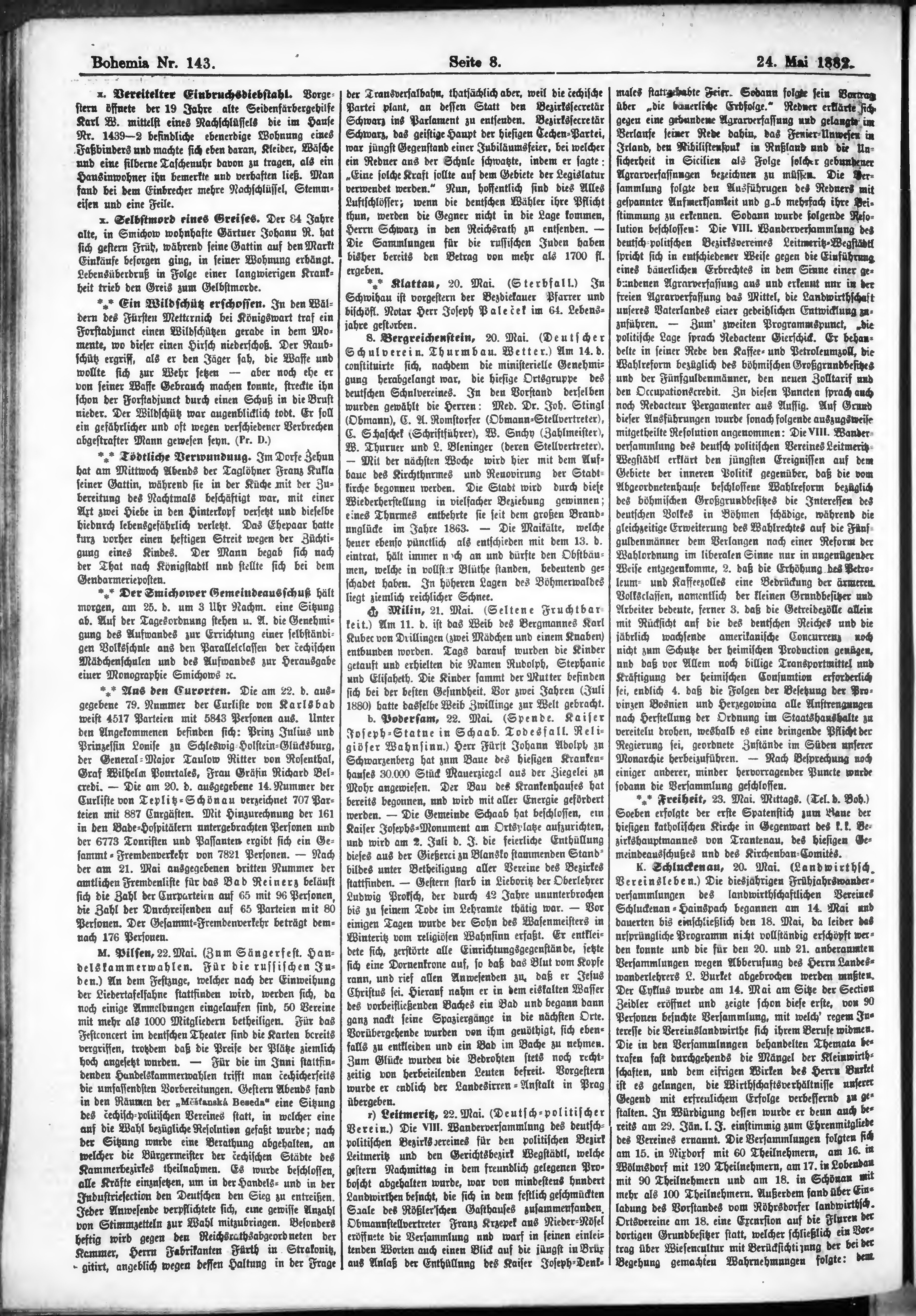 * Datum vydání výtisku: 24.5.1882 Číslo výtisku: 143