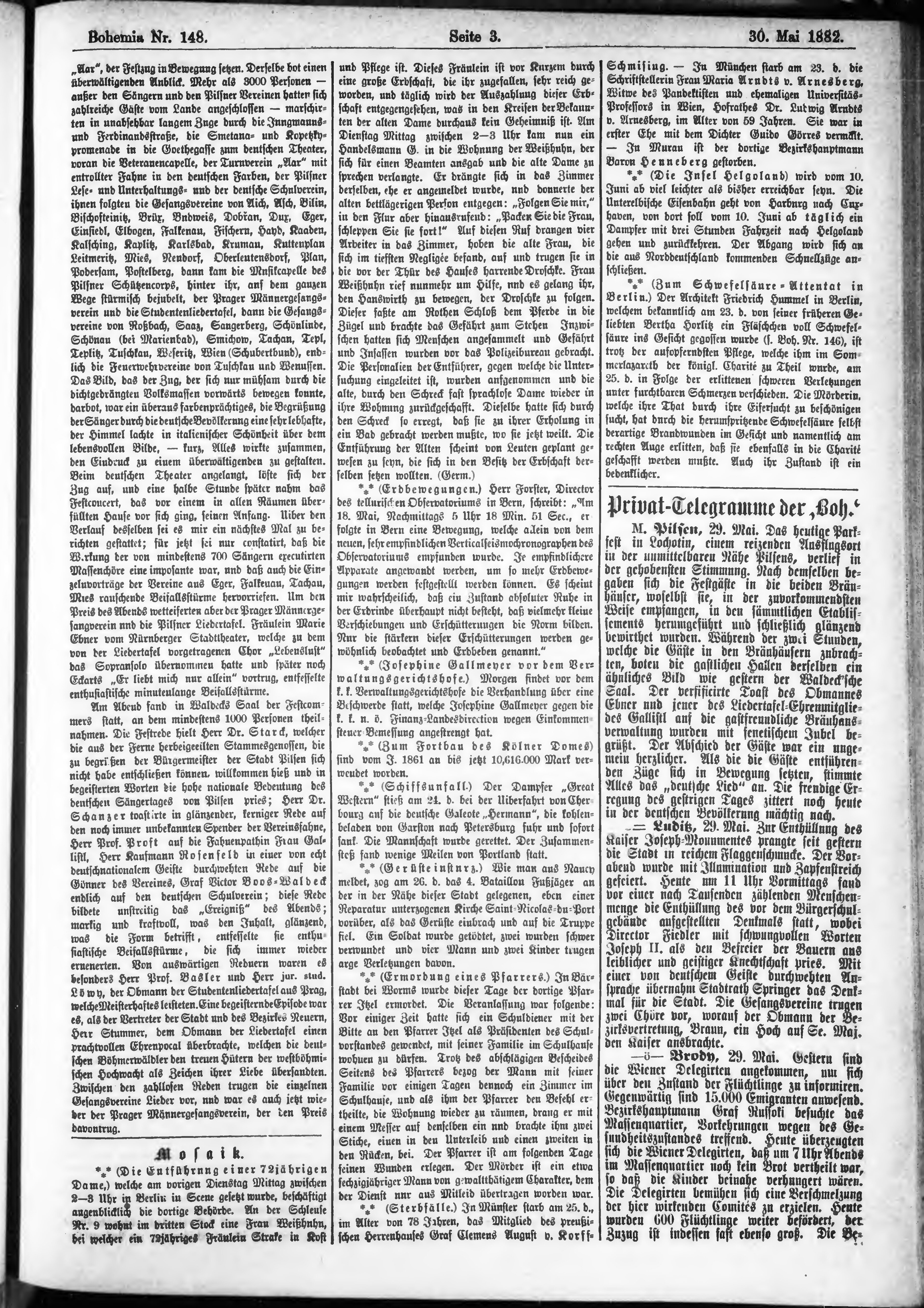 * Datum vydání výtisku: 30.5.1882 Číslo výtisku: 148