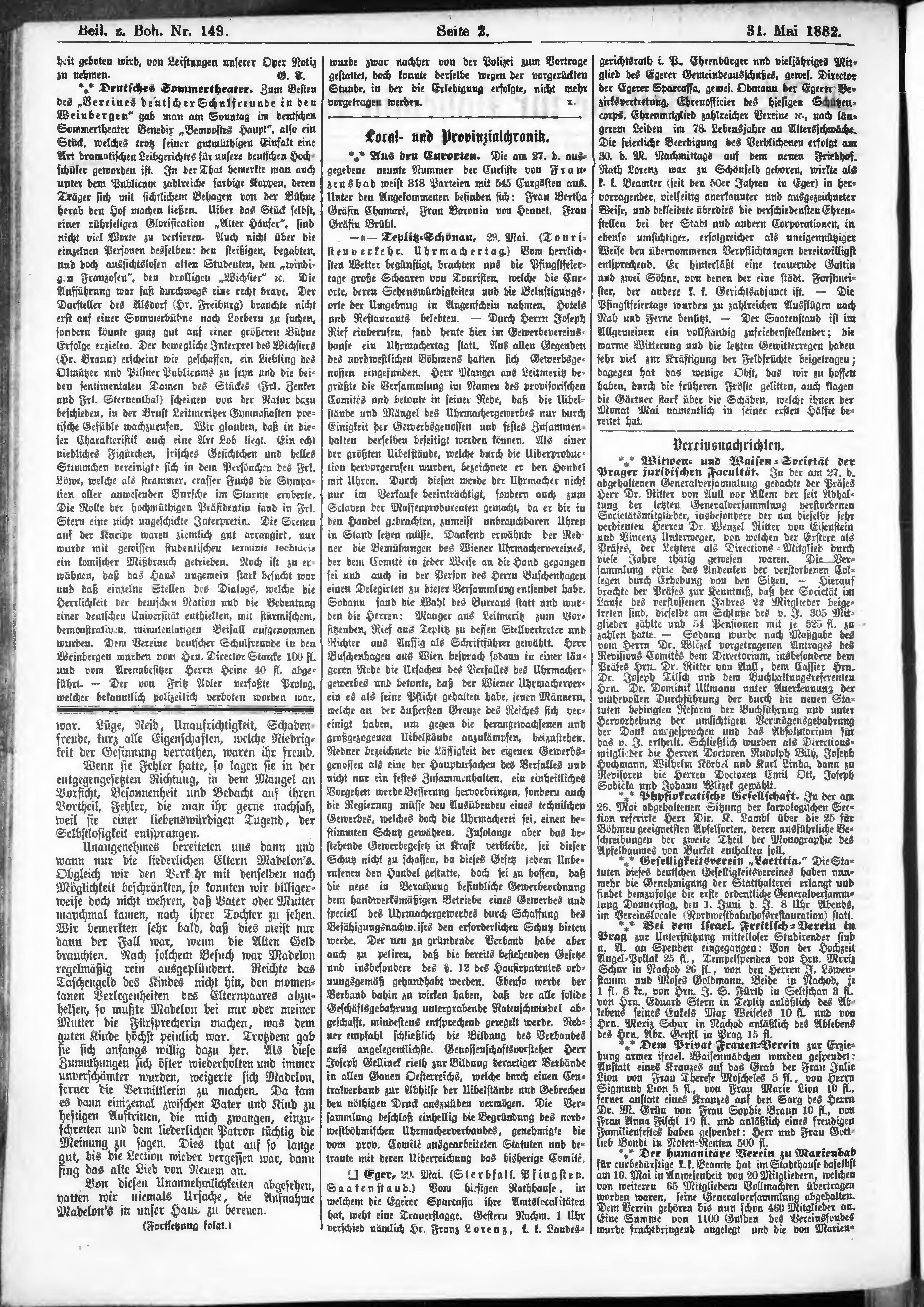 * Datum vydání výtisku: 31.5.1882 Číslo výtisku: 149 Typ výtisku: příloha