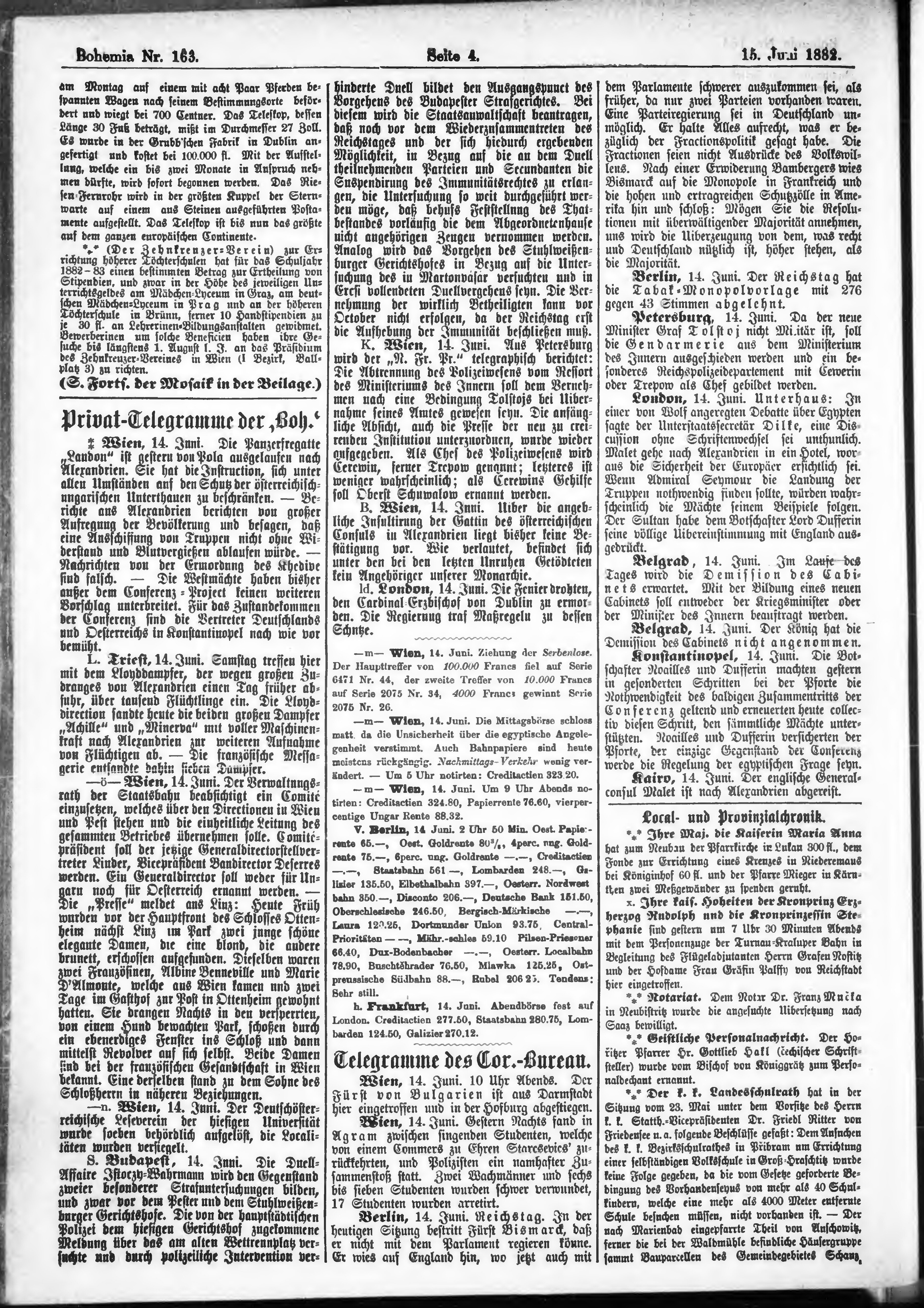 * Datum vydání výtisku: 15.6.1882 Číslo výtisku: 163