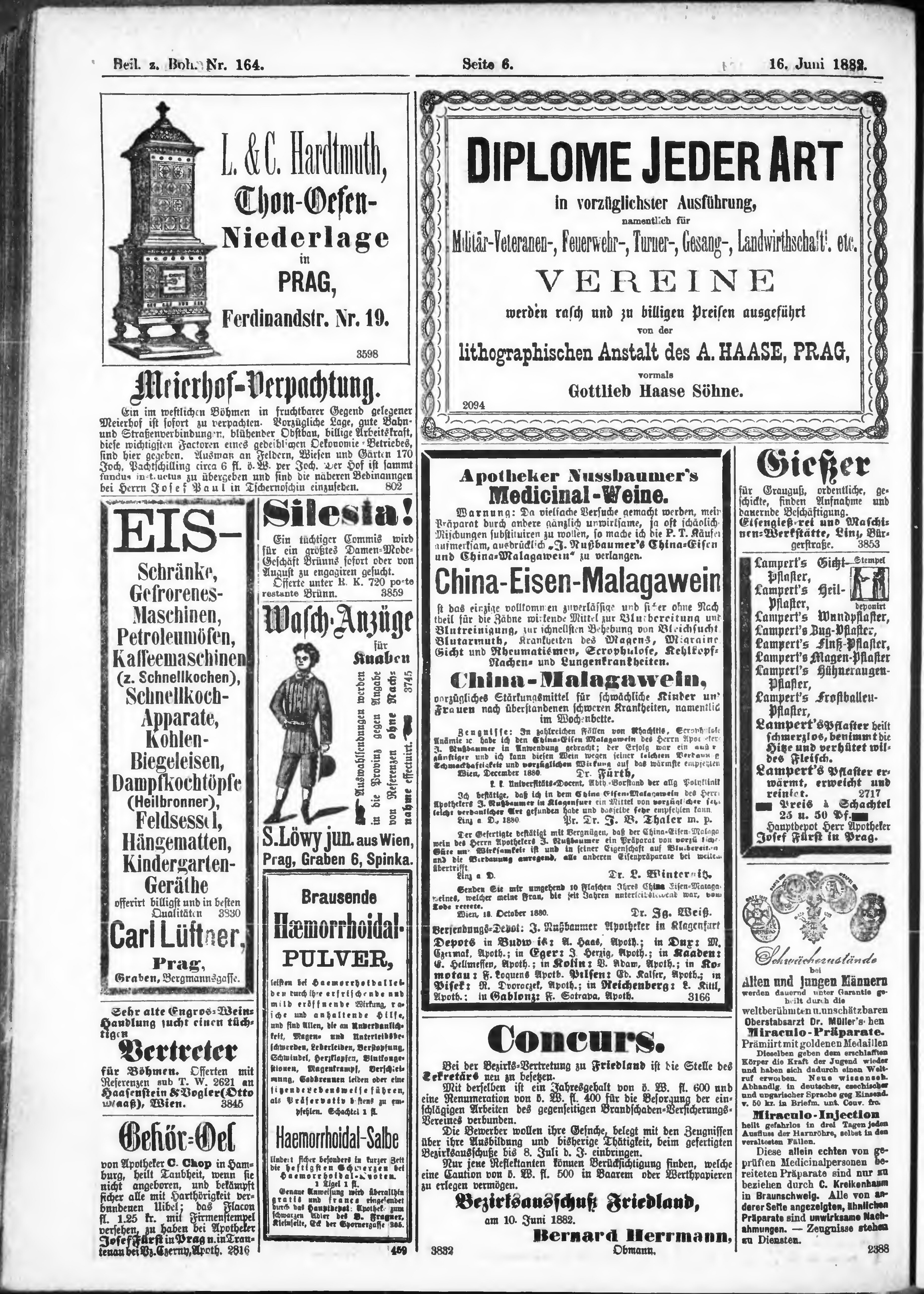 * Datum vydání výtisku: 16.6.1882 Číslo výtisku: 164 Typ výtisku: příloha