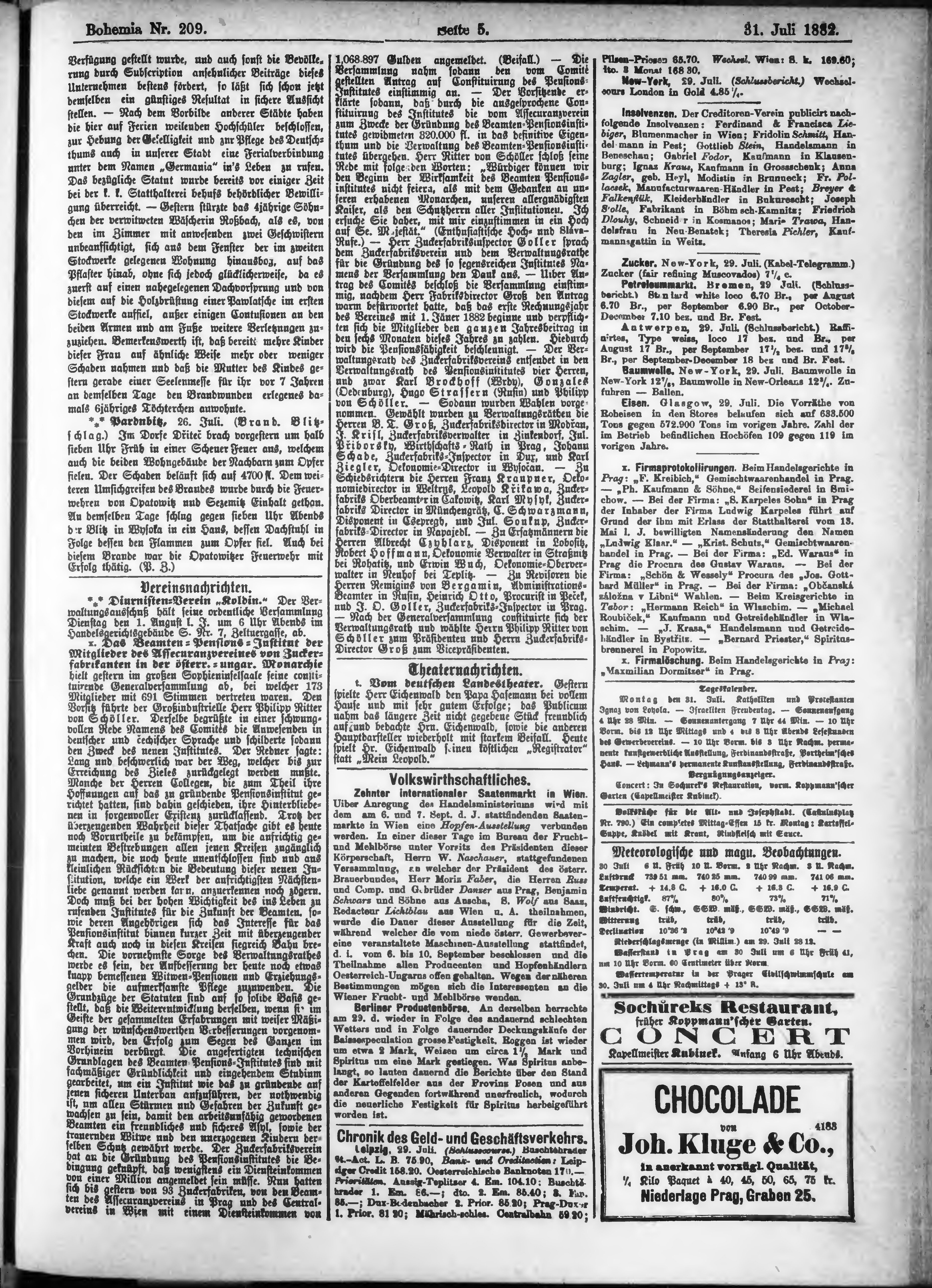 * Datum vydání výtisku: 31.7.1882 Číslo výtisku: 209