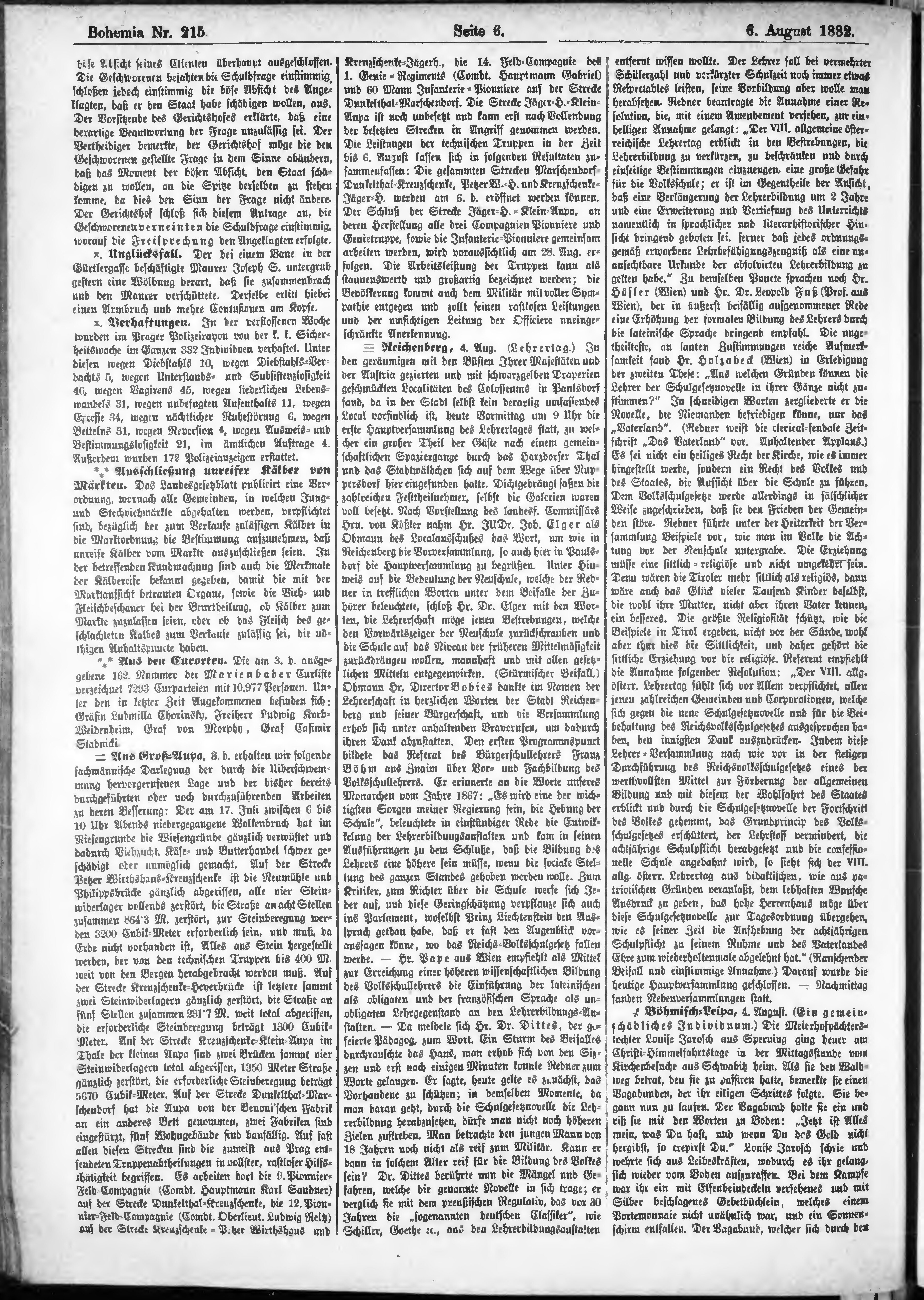 * Datum vydání výtisku: 6.8.1882 Číslo výtisku: 215