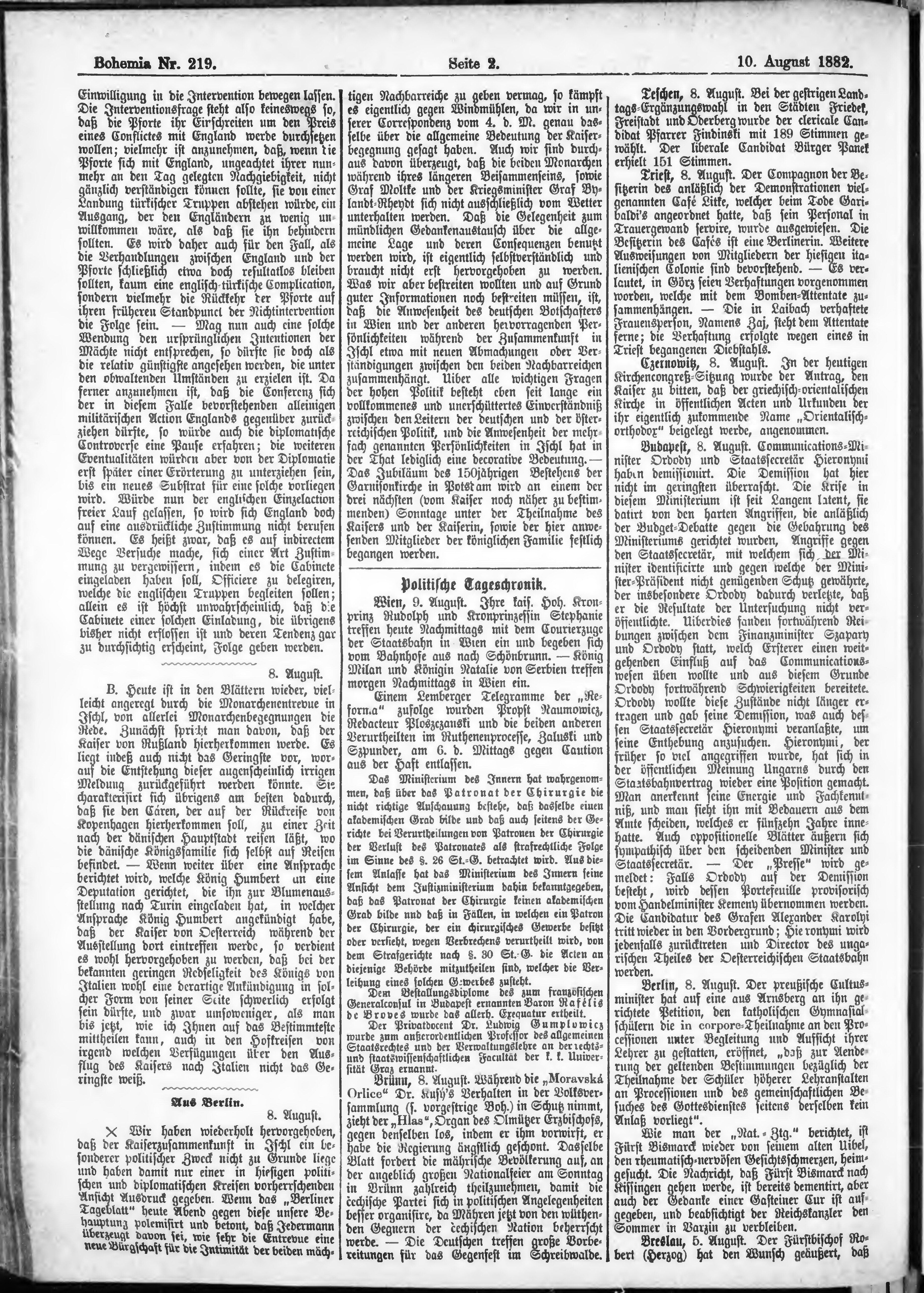 * Datum vydání výtisku: 10.8.1882 Číslo výtisku: 219