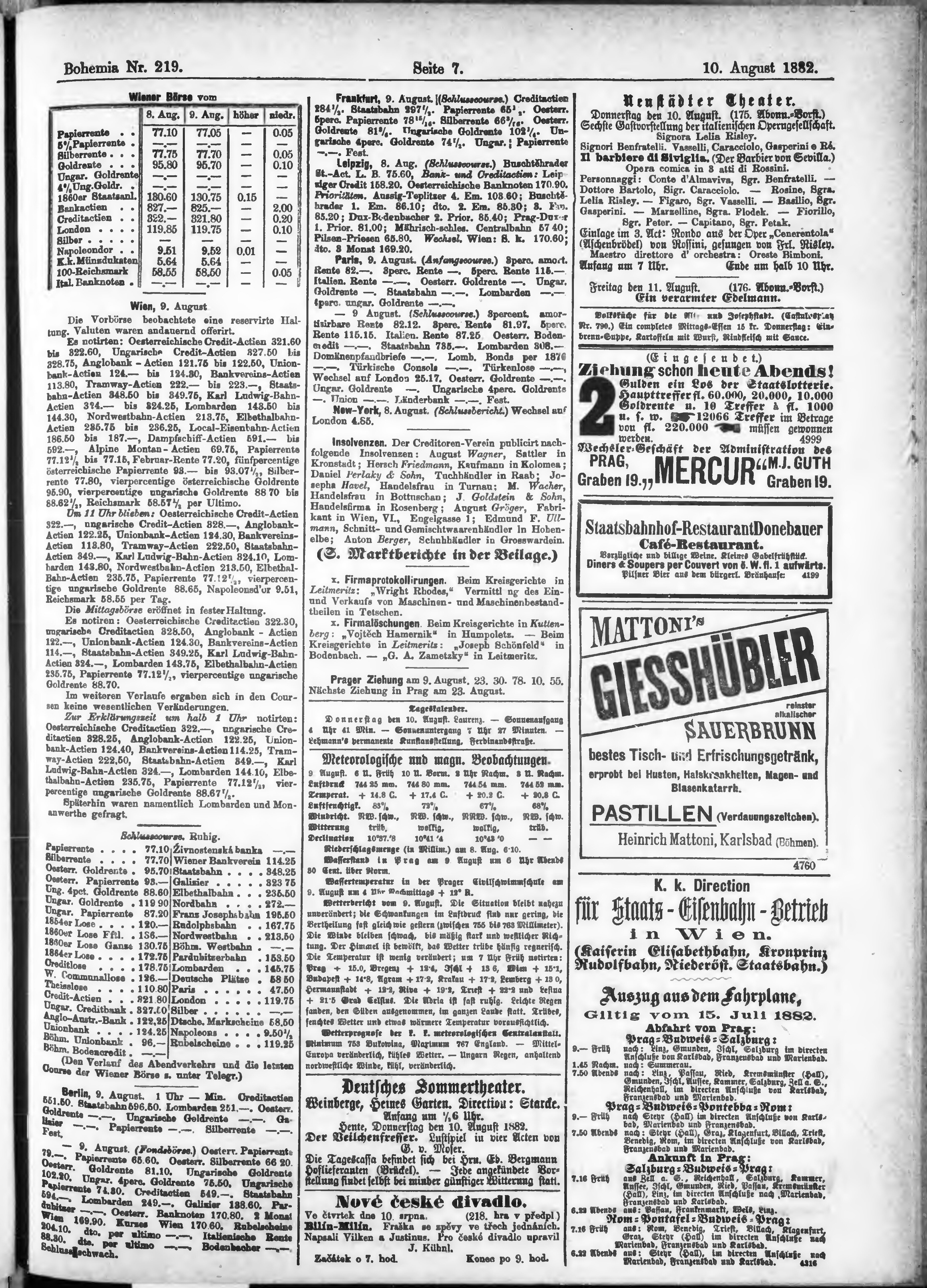 * Datum vydání výtisku: 10.8.1882 Číslo výtisku: 219
