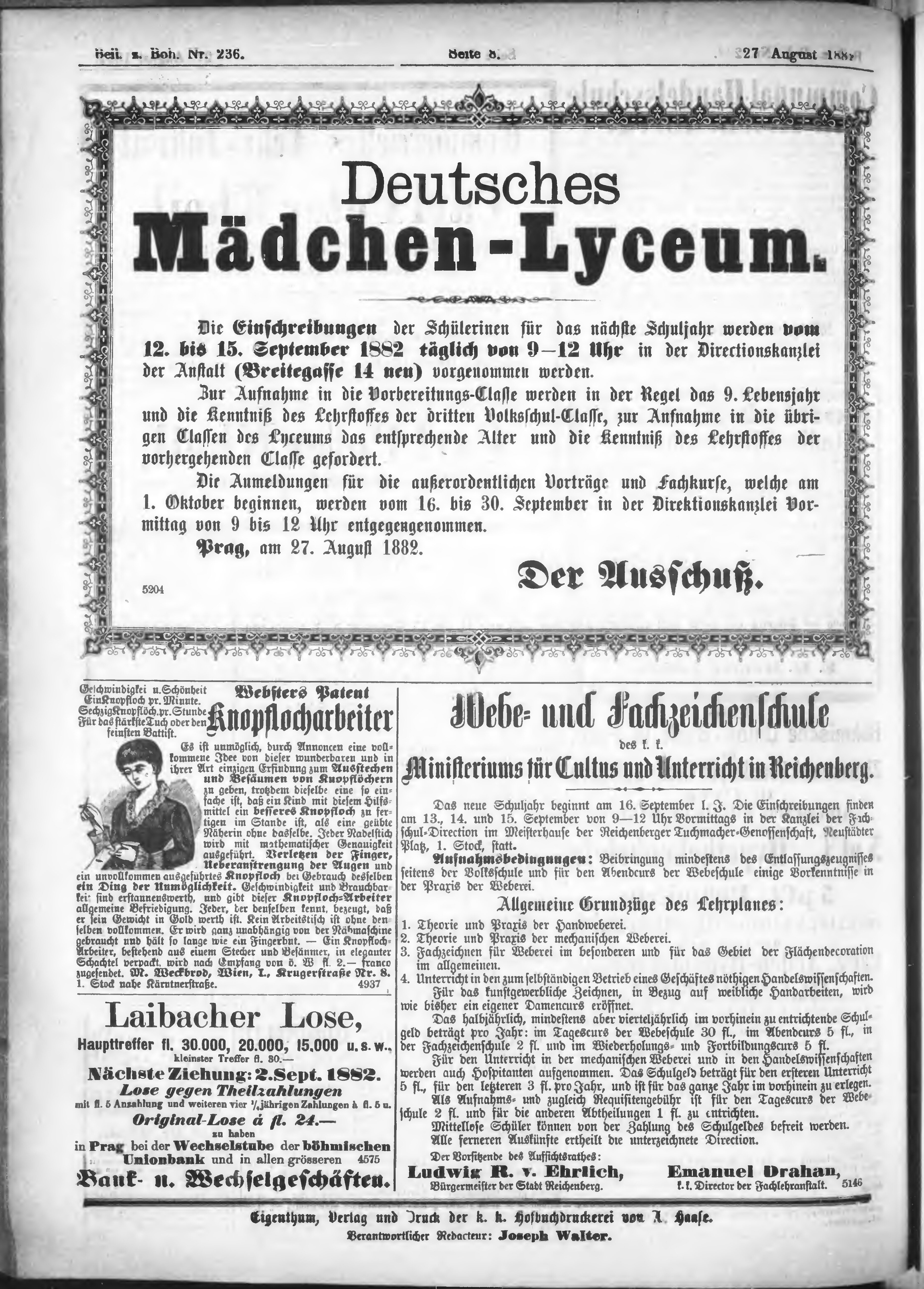 * Datum vydání výtisku: 27.8.1882 Číslo výtisku: 236 Typ výtisku: příloha