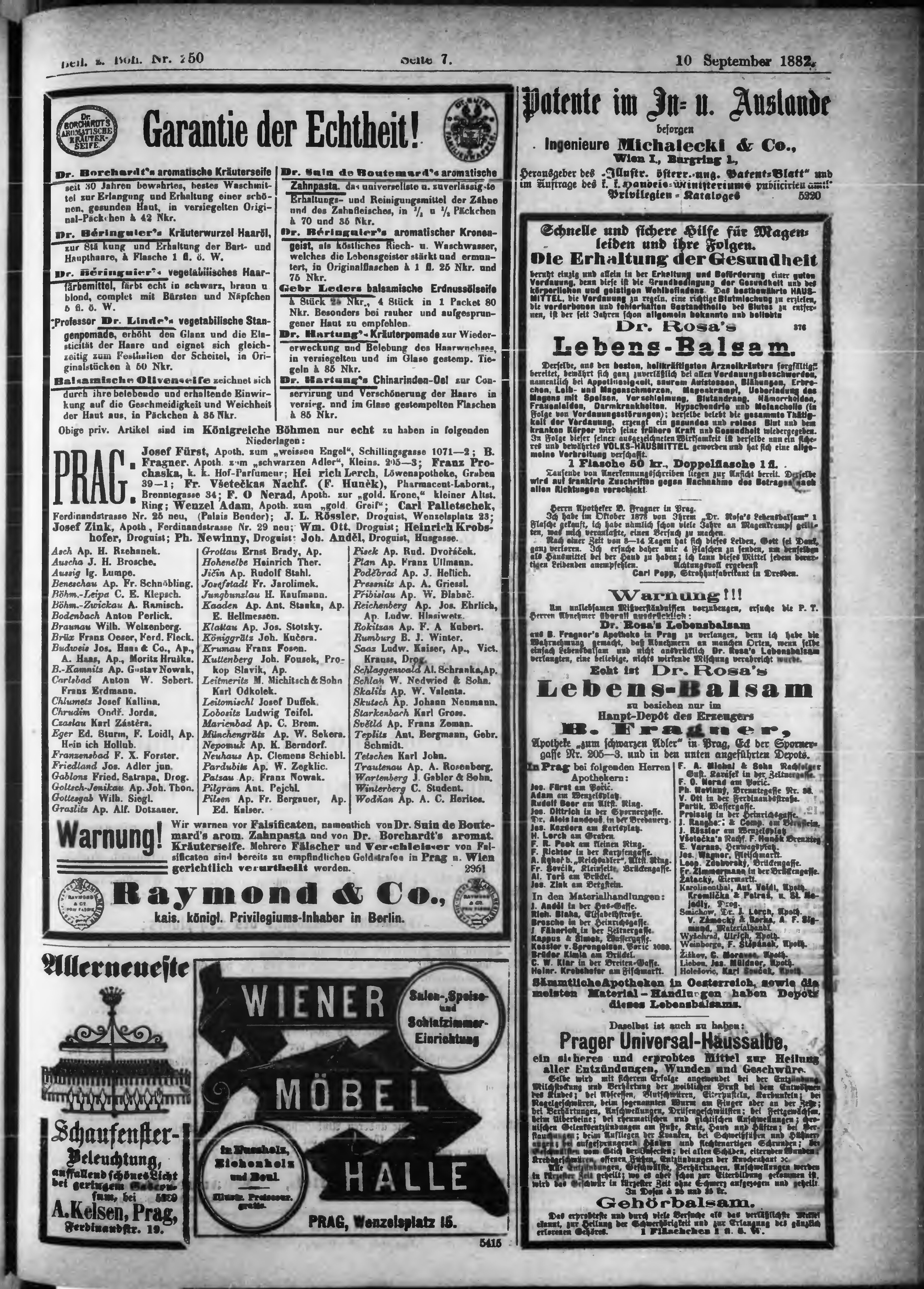 * Datum vydání výtisku: 10.9.1882 Číslo výtisku: 250 Typ výtisku: příloha