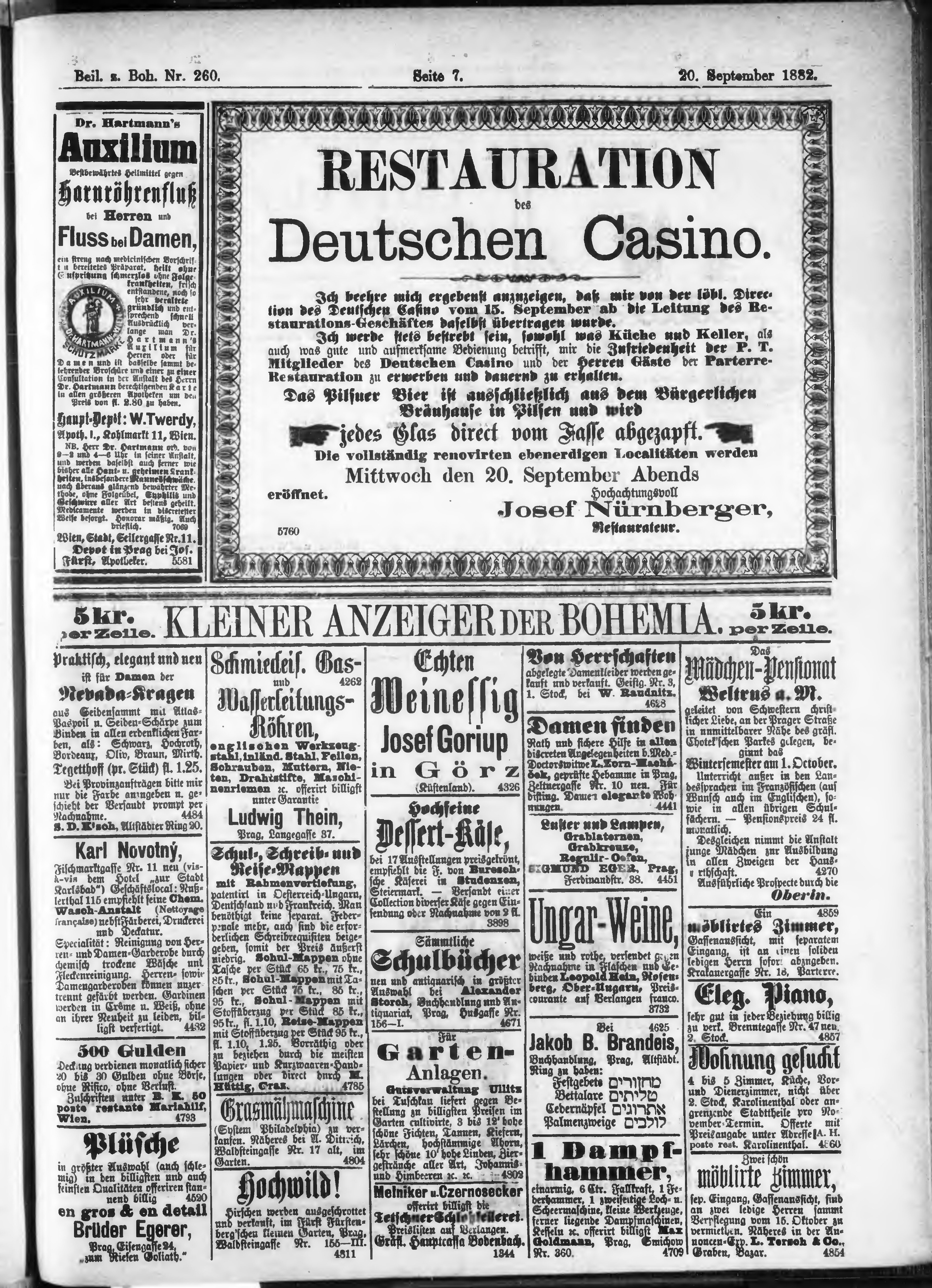* Datum vydání výtisku: 20.9.1882 Číslo výtisku: 260 Typ výtisku: příloha
