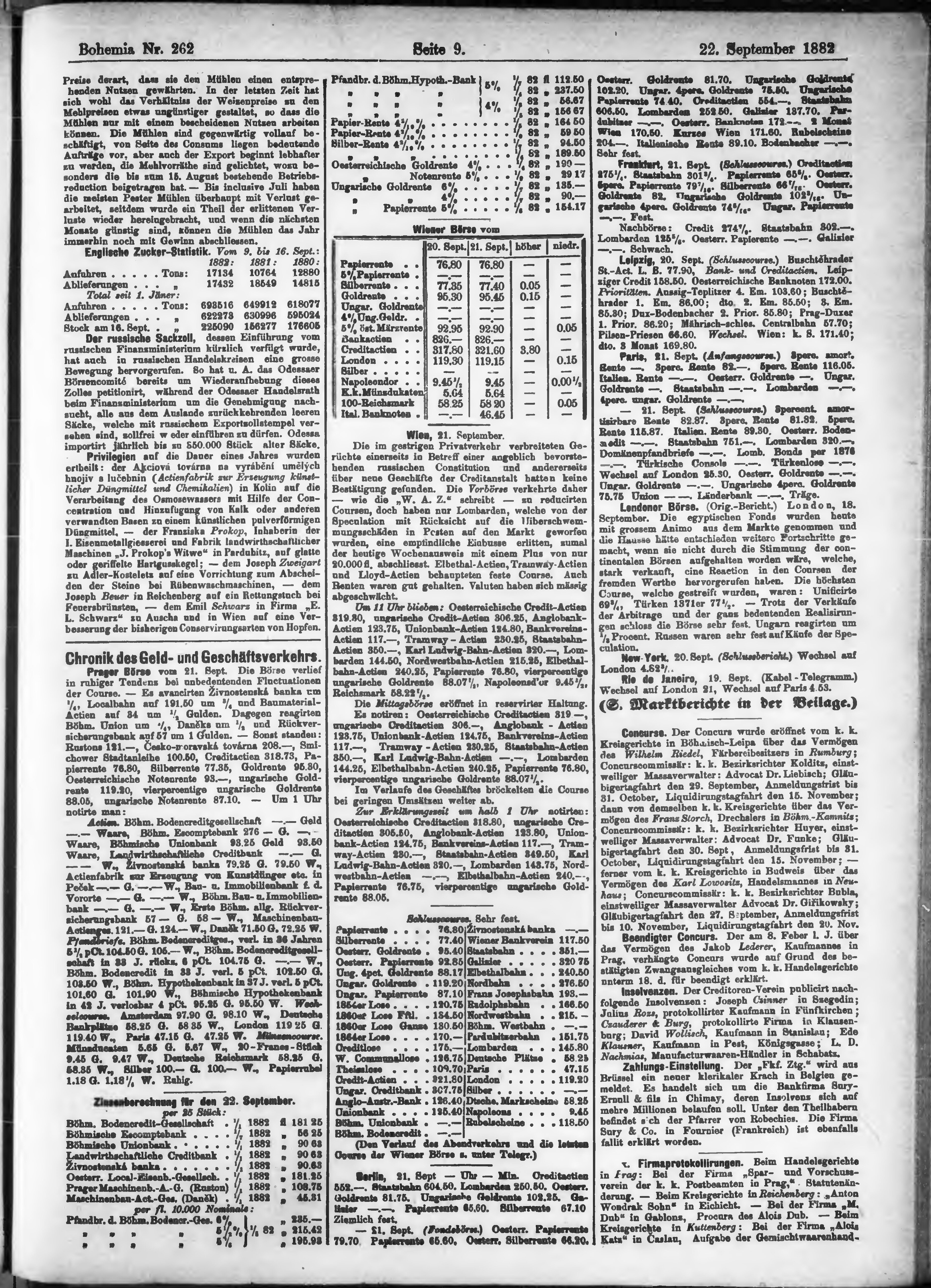 * Datum vydání výtisku: 22.9.1882 Číslo výtisku: 262