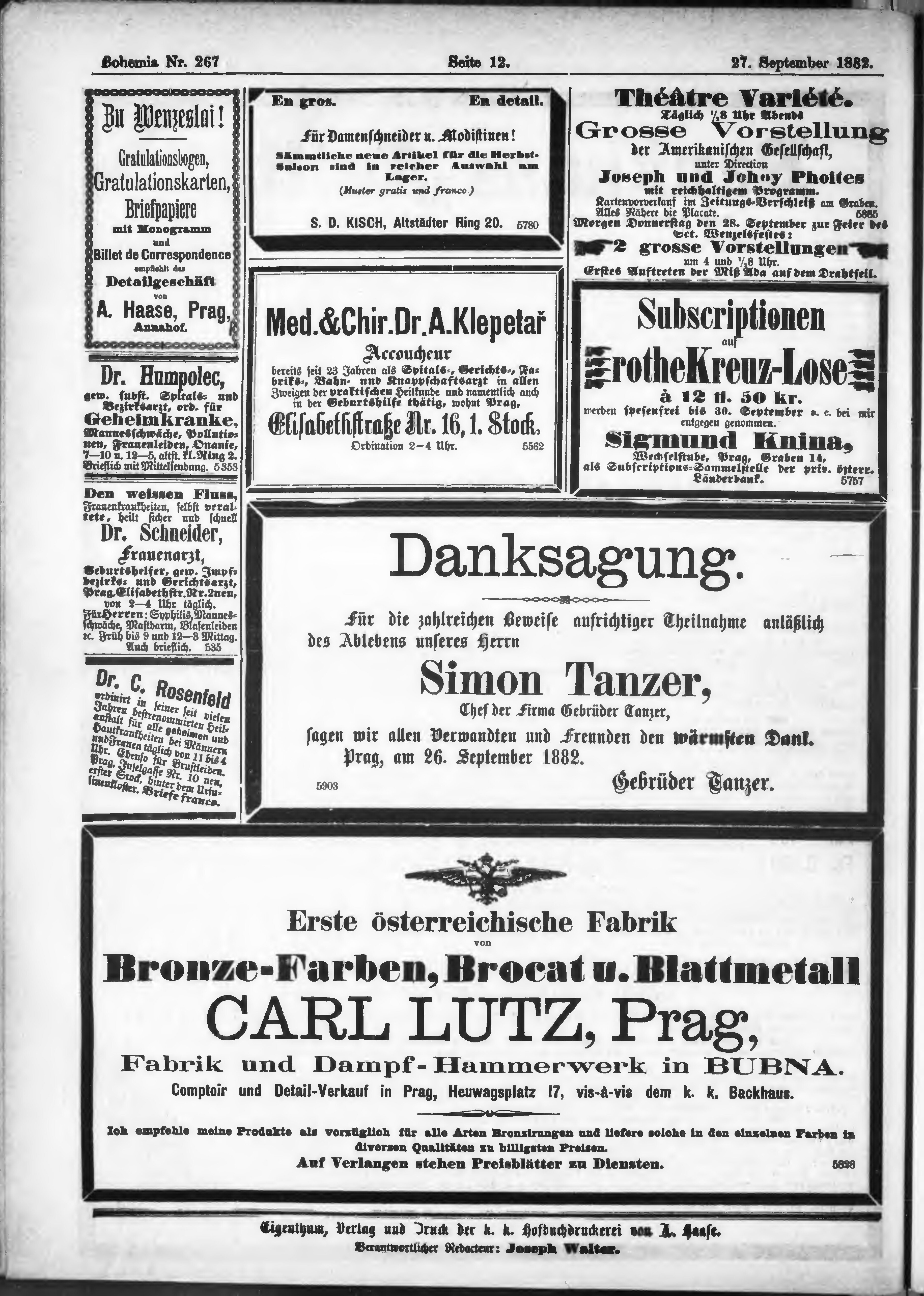 * Datum vydání výtisku: 27.9.1882 Číslo výtisku: 267