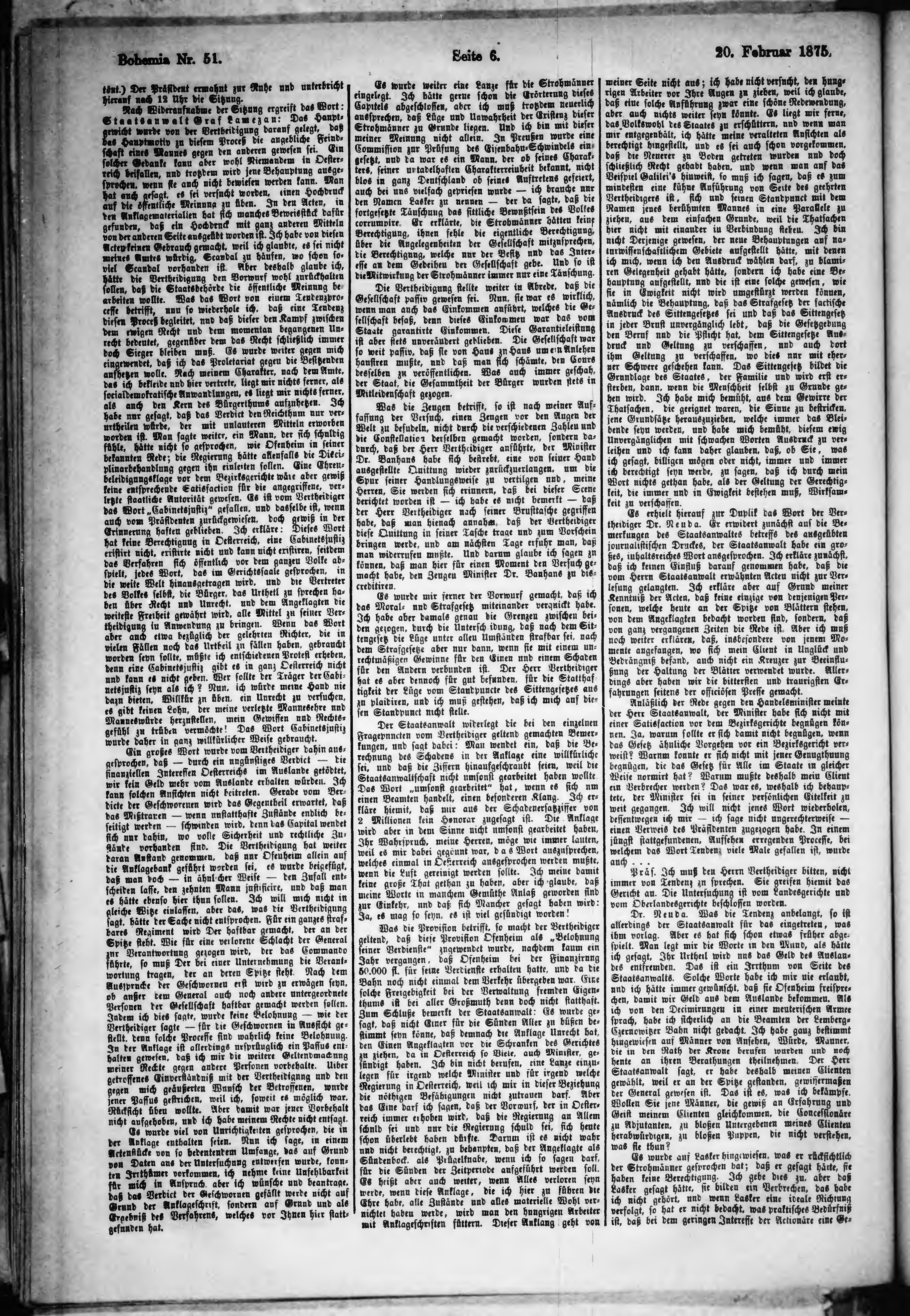 * Datum vydání výtisku: 20.2.1875 Číslo výtisku: 51