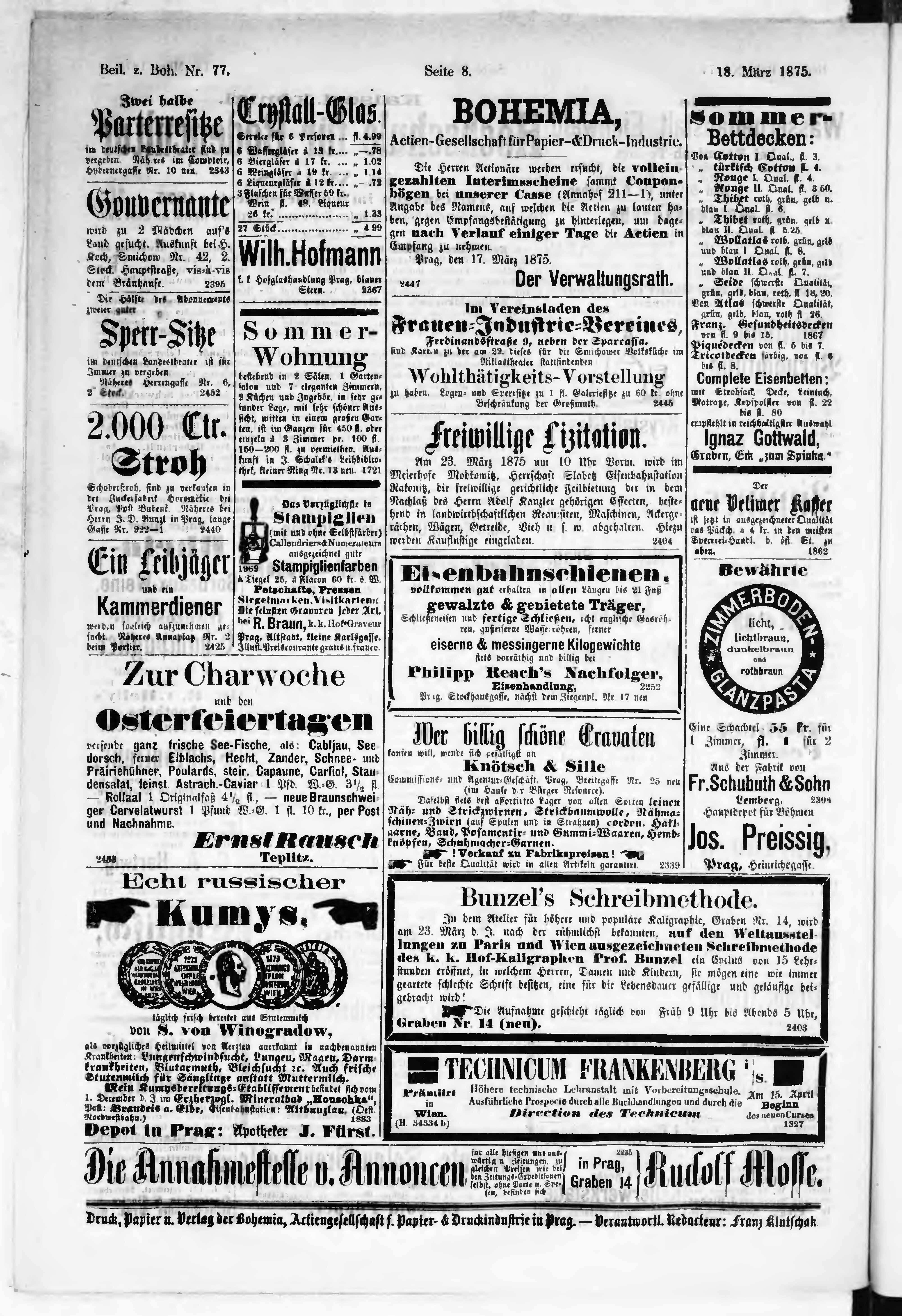 * Datum vydání výtisku: 18.3.1875 Číslo výtisku: 77 Typ výtisku: příloha