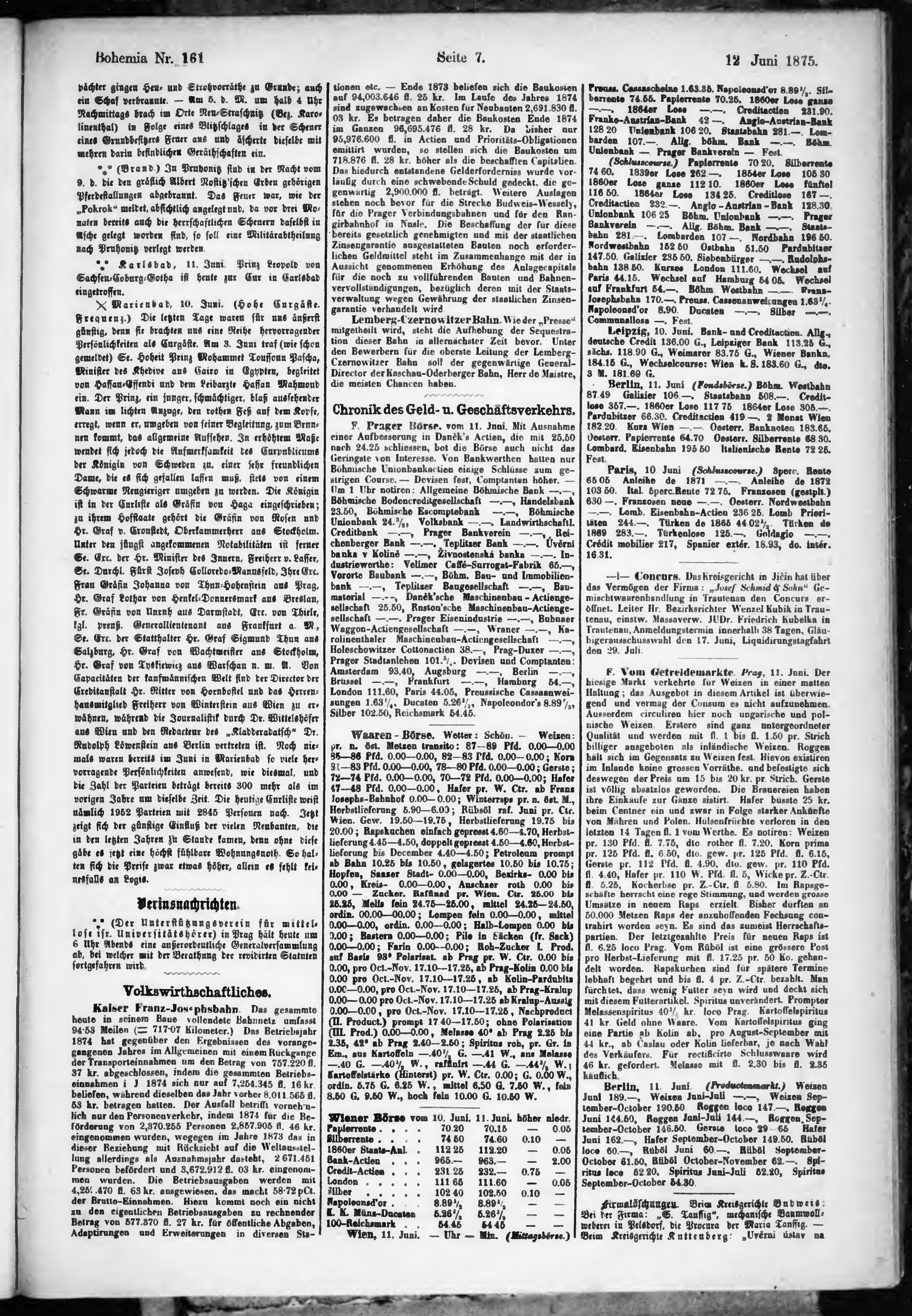 * Datum vydání výtisku: 12.6.1875 Číslo výtisku: 161