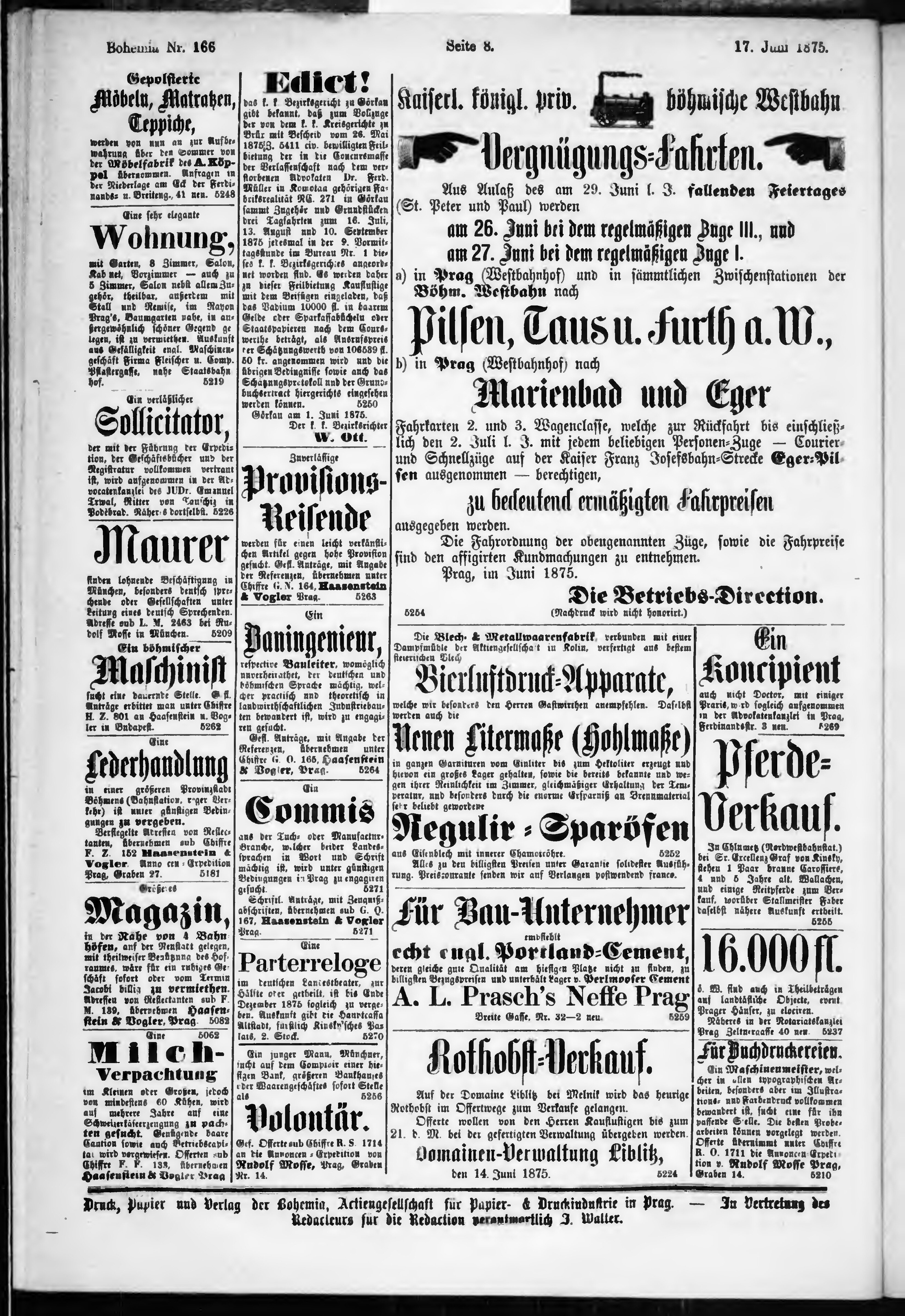 * Datum vydání výtisku: 17.6.1875 Číslo výtisku: 166