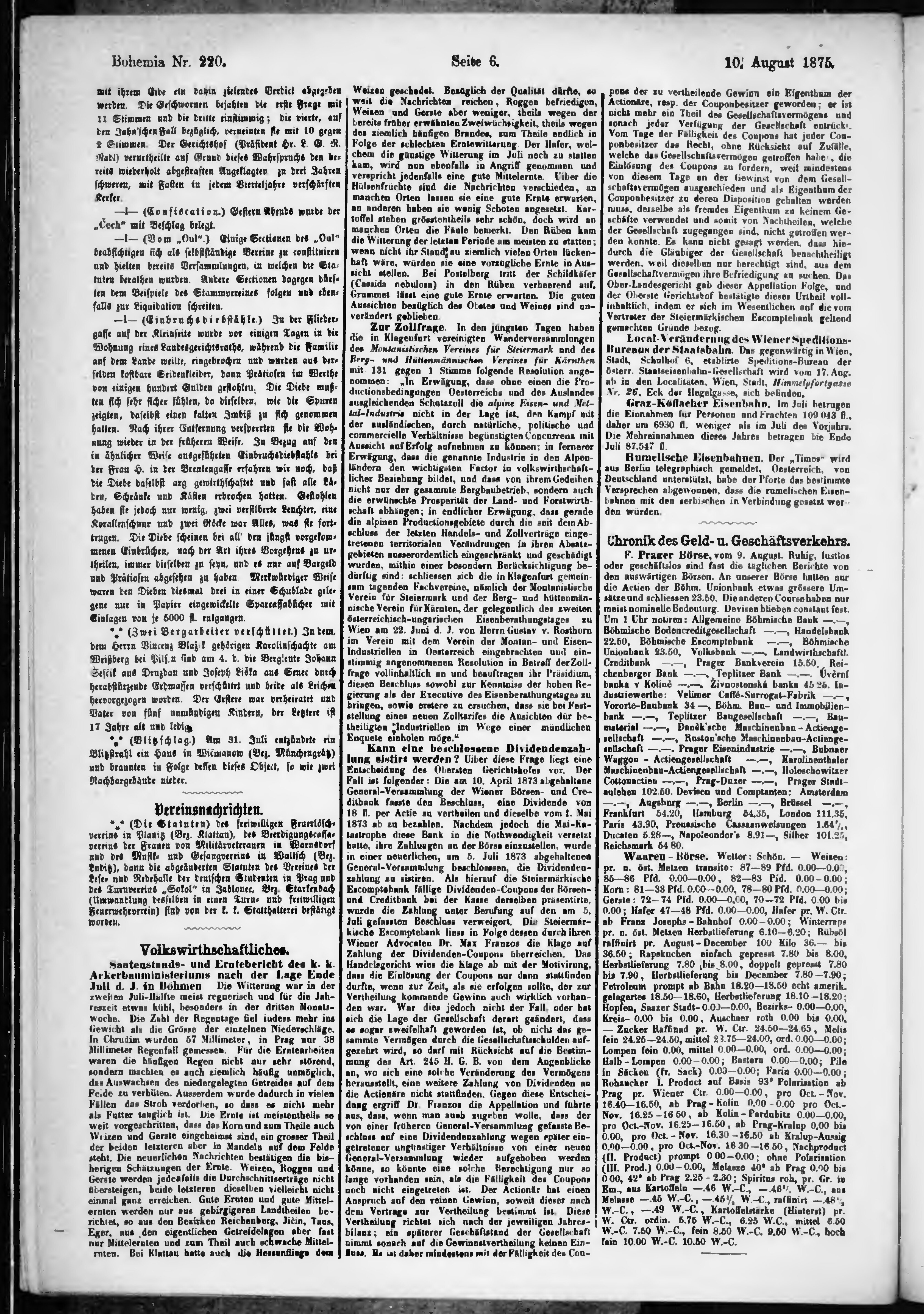 * Datum vydání výtisku: 10.8.1875 Číslo výtisku: 220