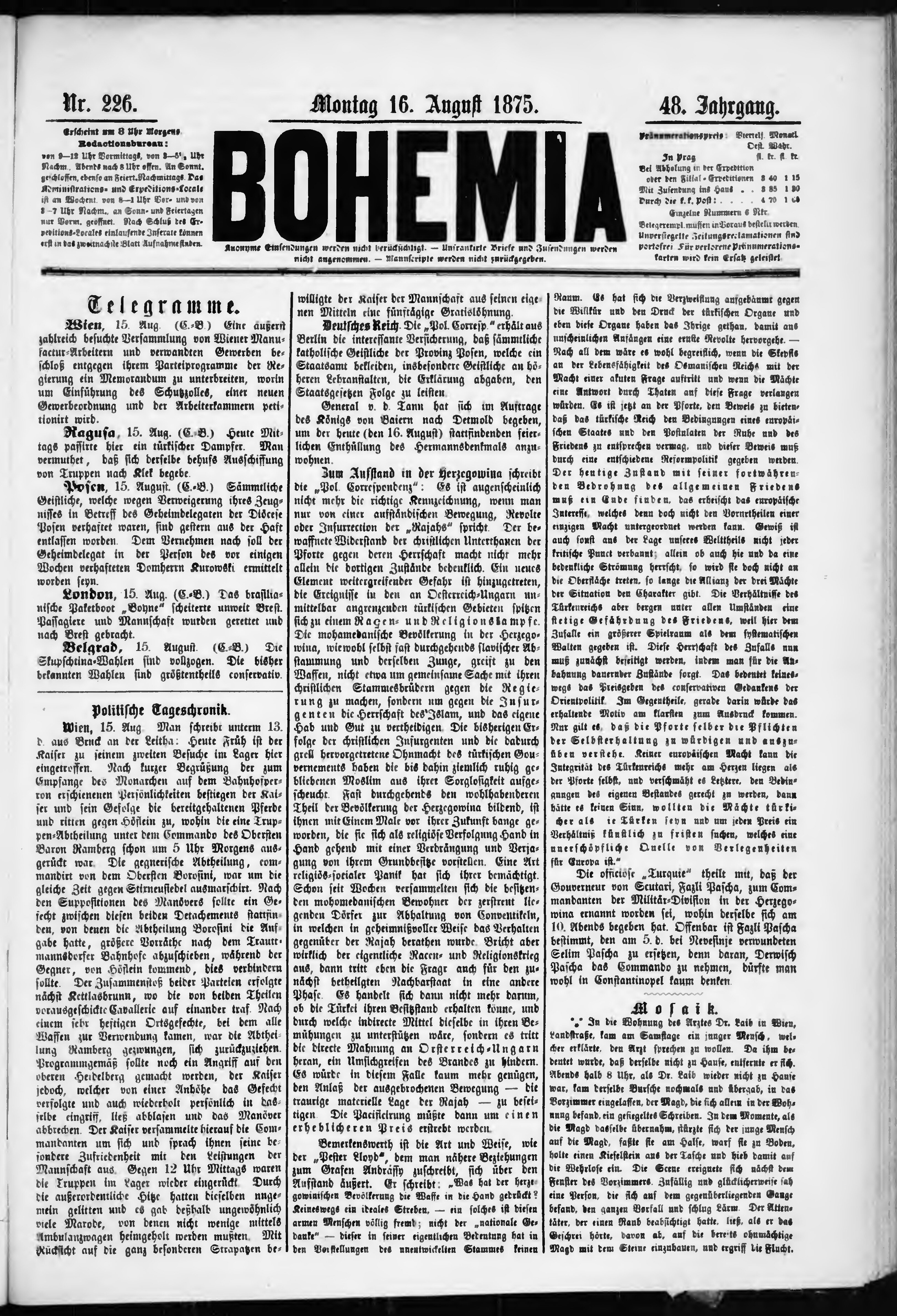 * Datum vydání výtisku: 16.8.1875 Číslo výtisku: 226