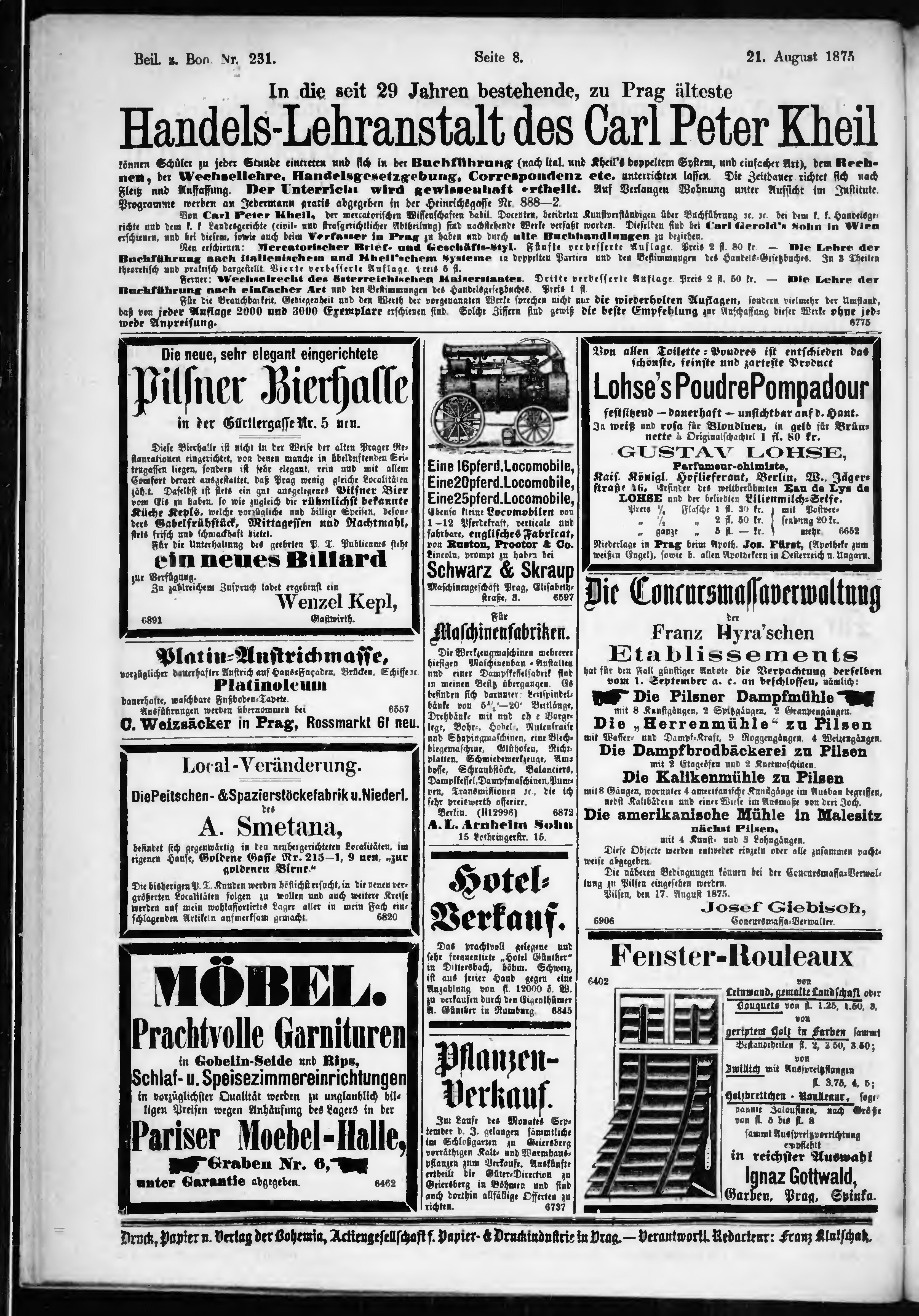 * Datum vydání výtisku: 21.8.1875 Číslo výtisku: 231 Typ výtisku: příloha