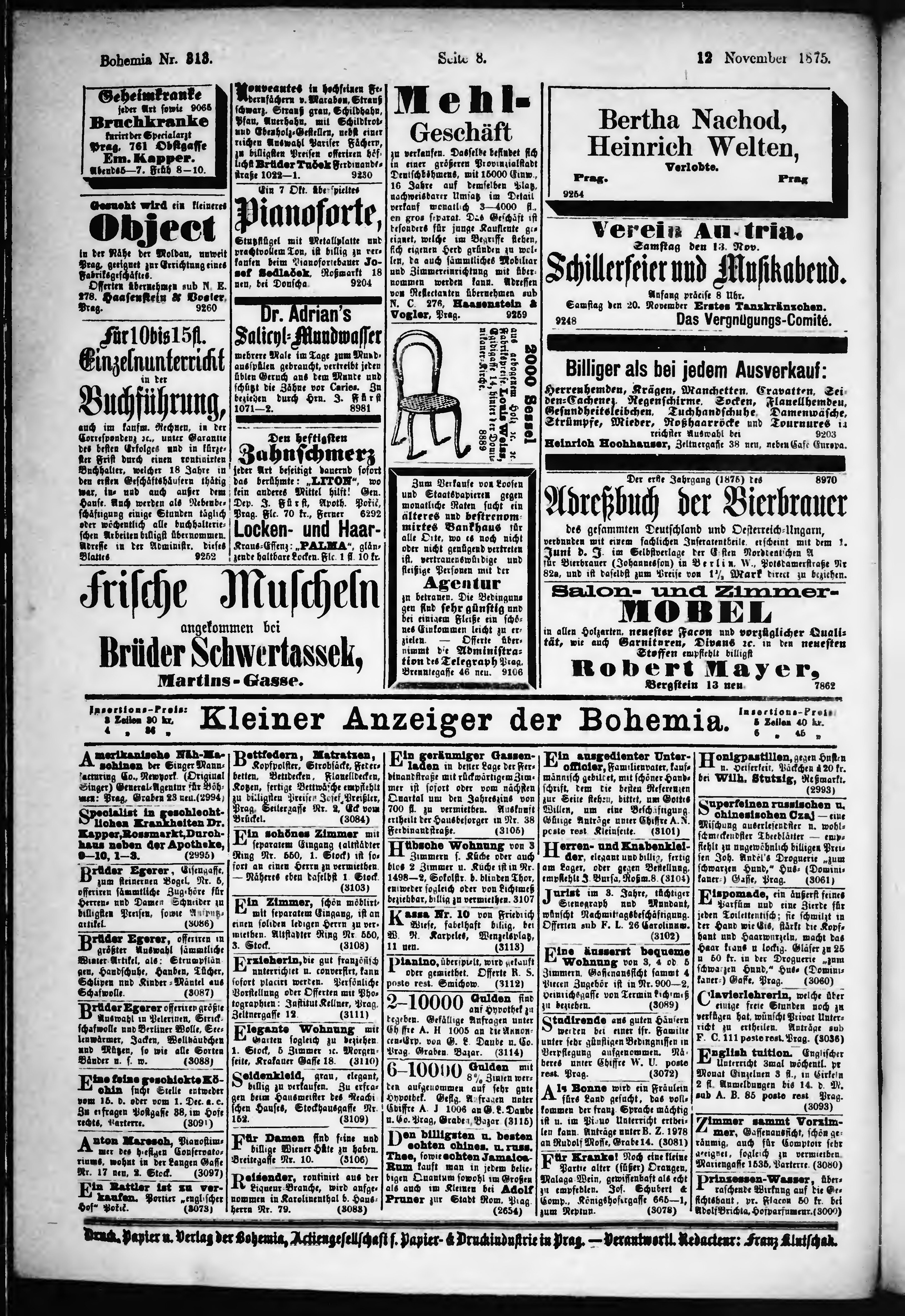 * Datum vydání výtisku: 12.11.1875 Číslo výtisku: 313