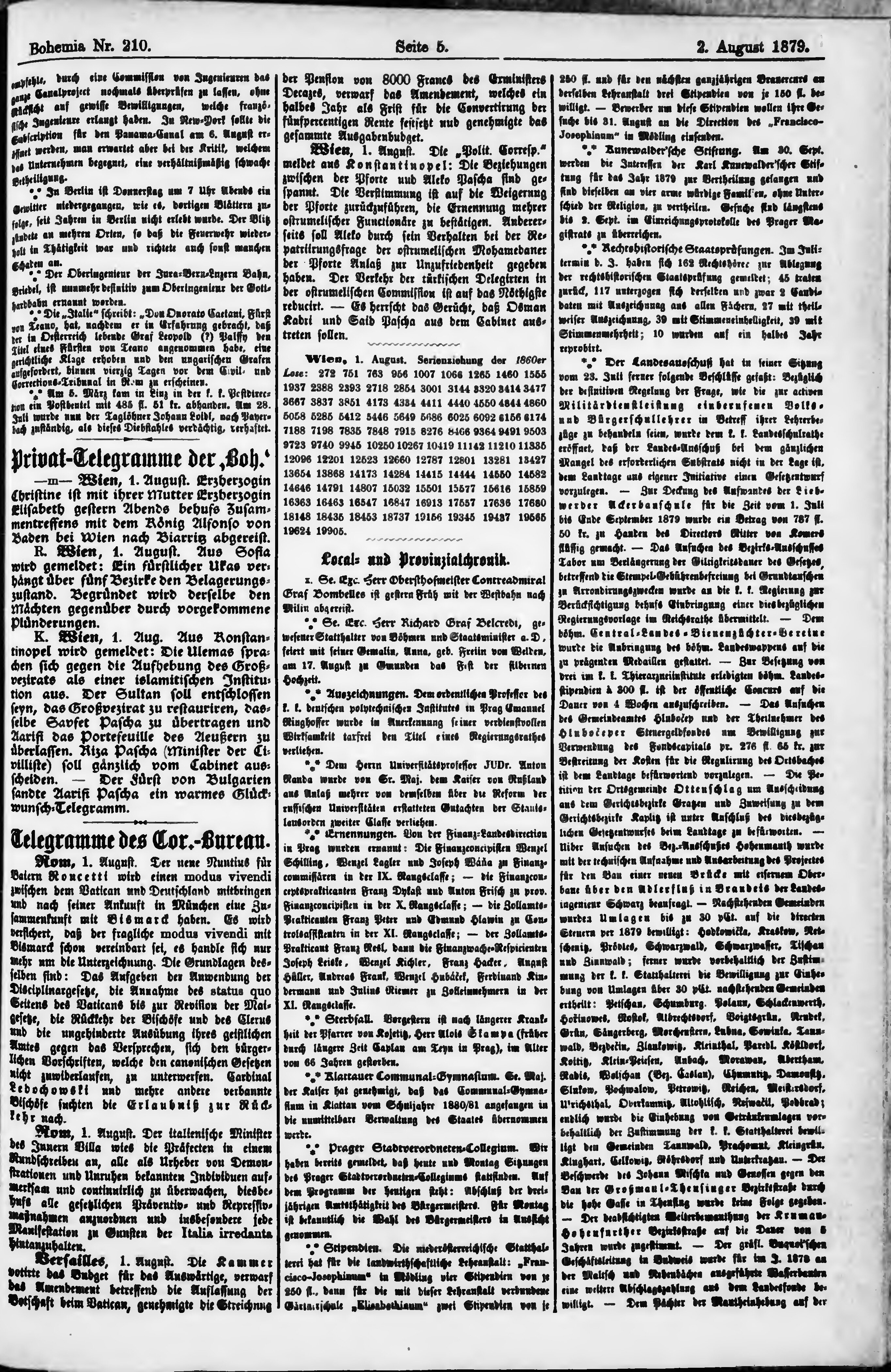 * Datum vydání výtisku: 2.8.1879 Číslo výtisku: 210