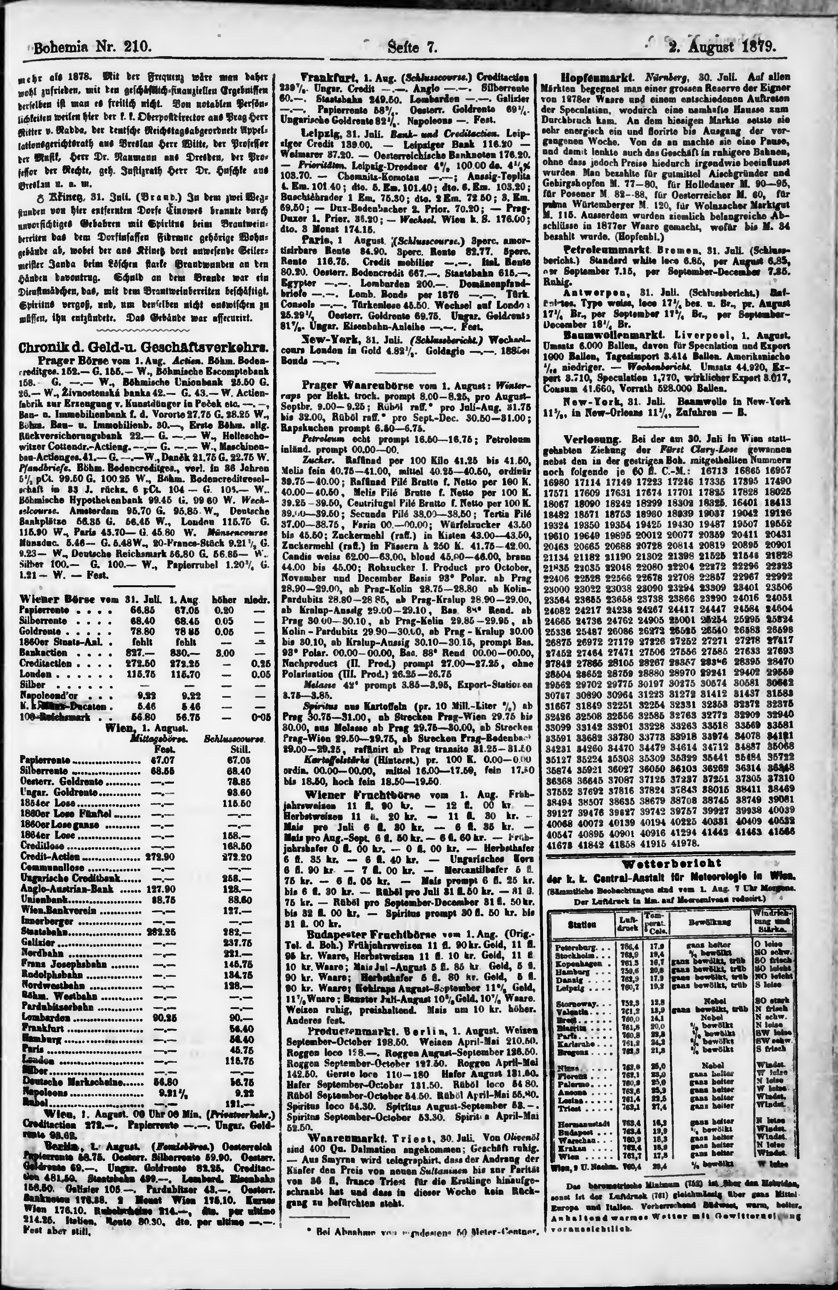 * Datum vydání výtisku: 2.8.1879 Číslo výtisku: 210