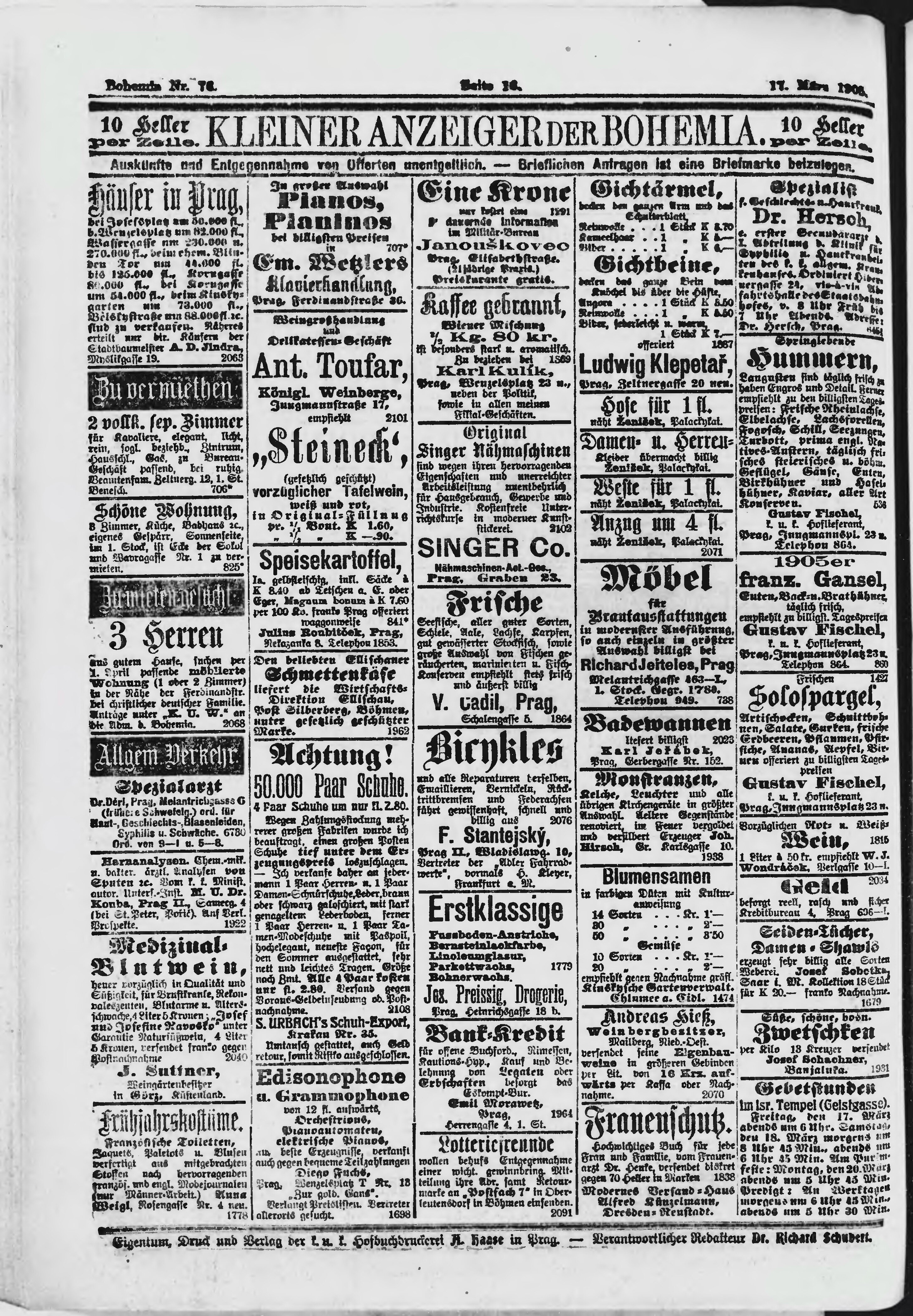 * Datum vydání výtisku: 17.3.1905 Číslo výtisku: 76 Poznámky k výtisku: ranní vydání;