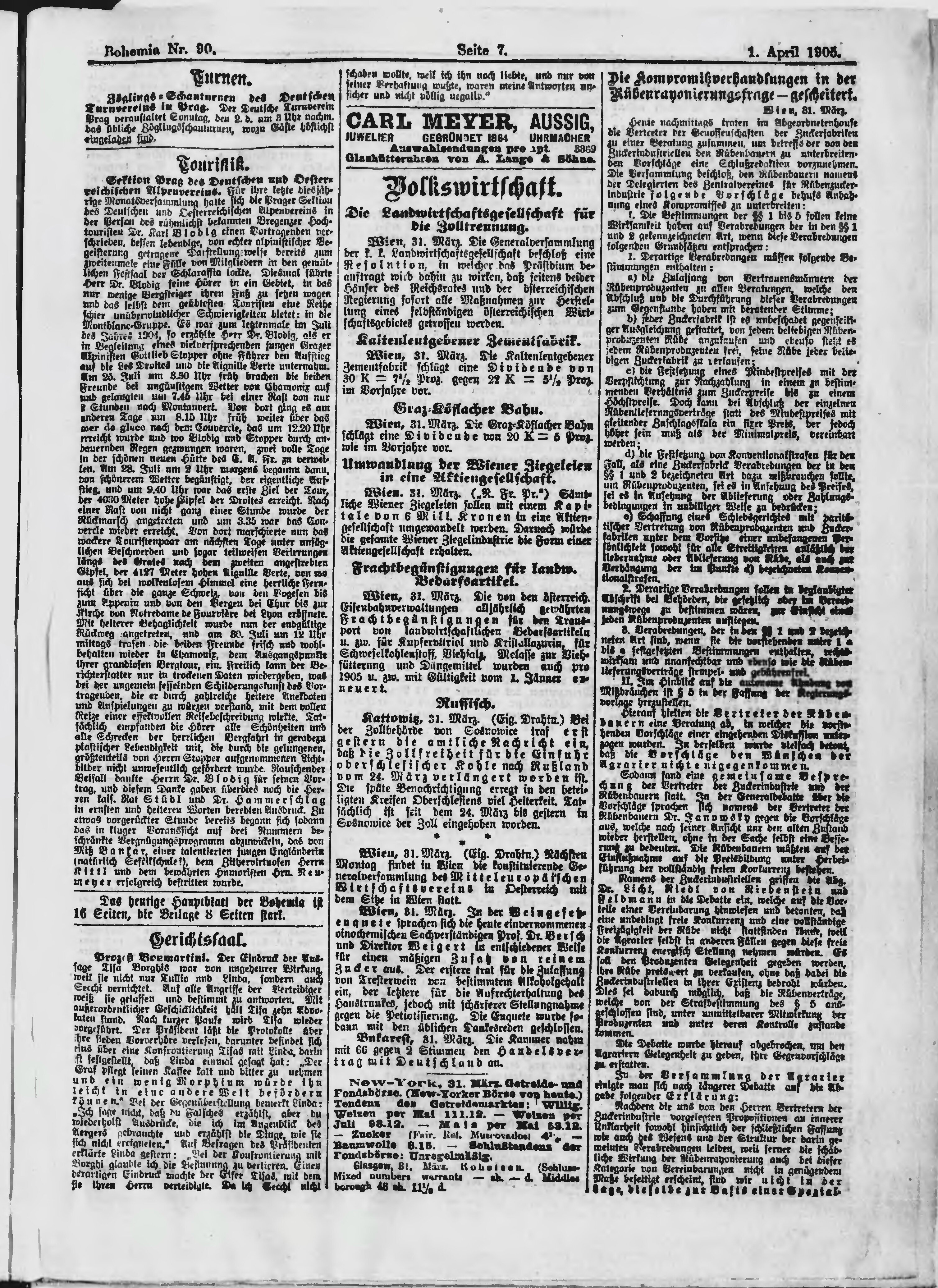 * Datum vydání výtisku: 1.4.1905 Číslo výtisku: 90 Poznámky k výtisku: ranní vydání;