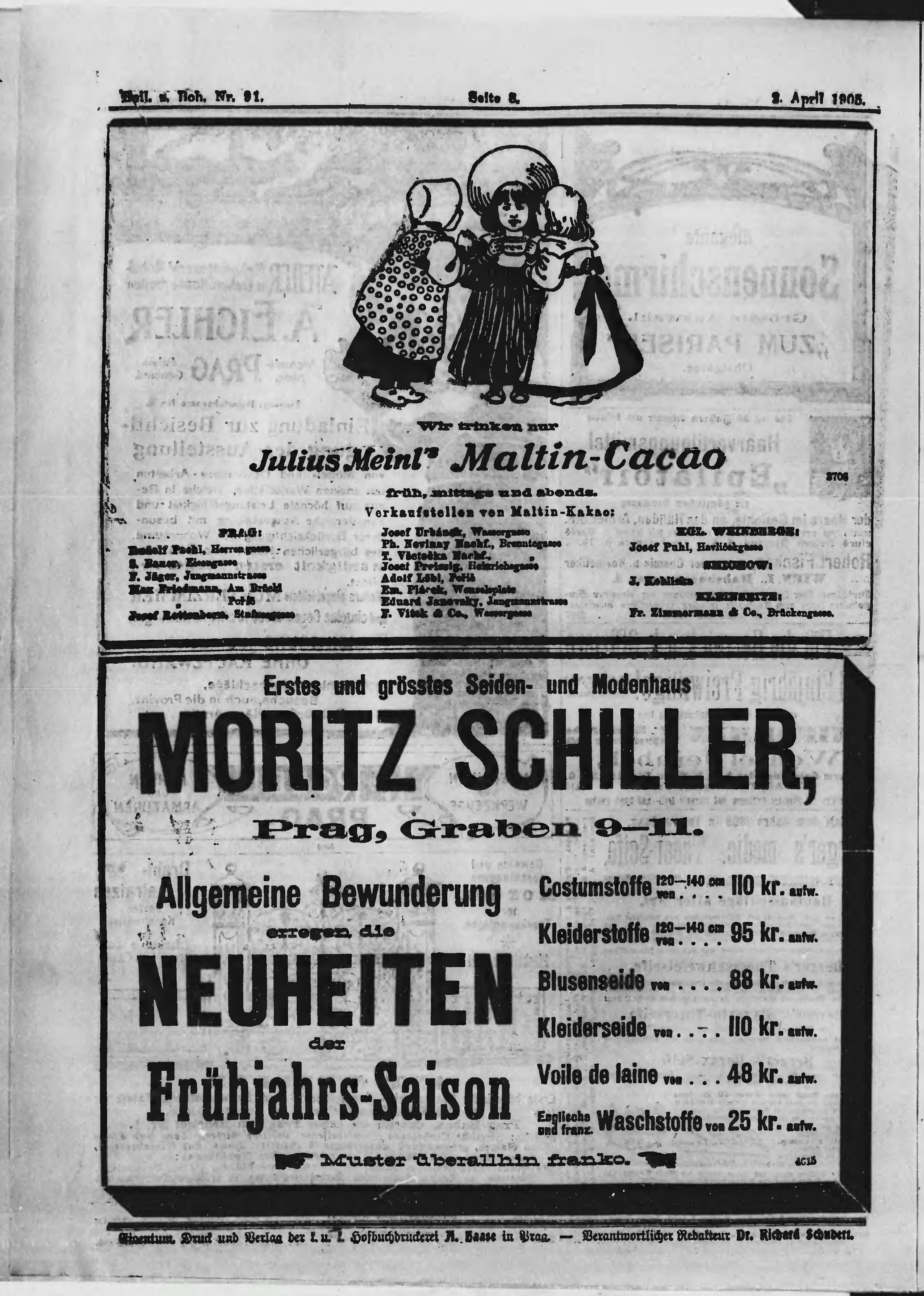 * Datum vydání výtisku: 2.4.1905 Číslo výtisku: 91 Typ výtisku: příloha