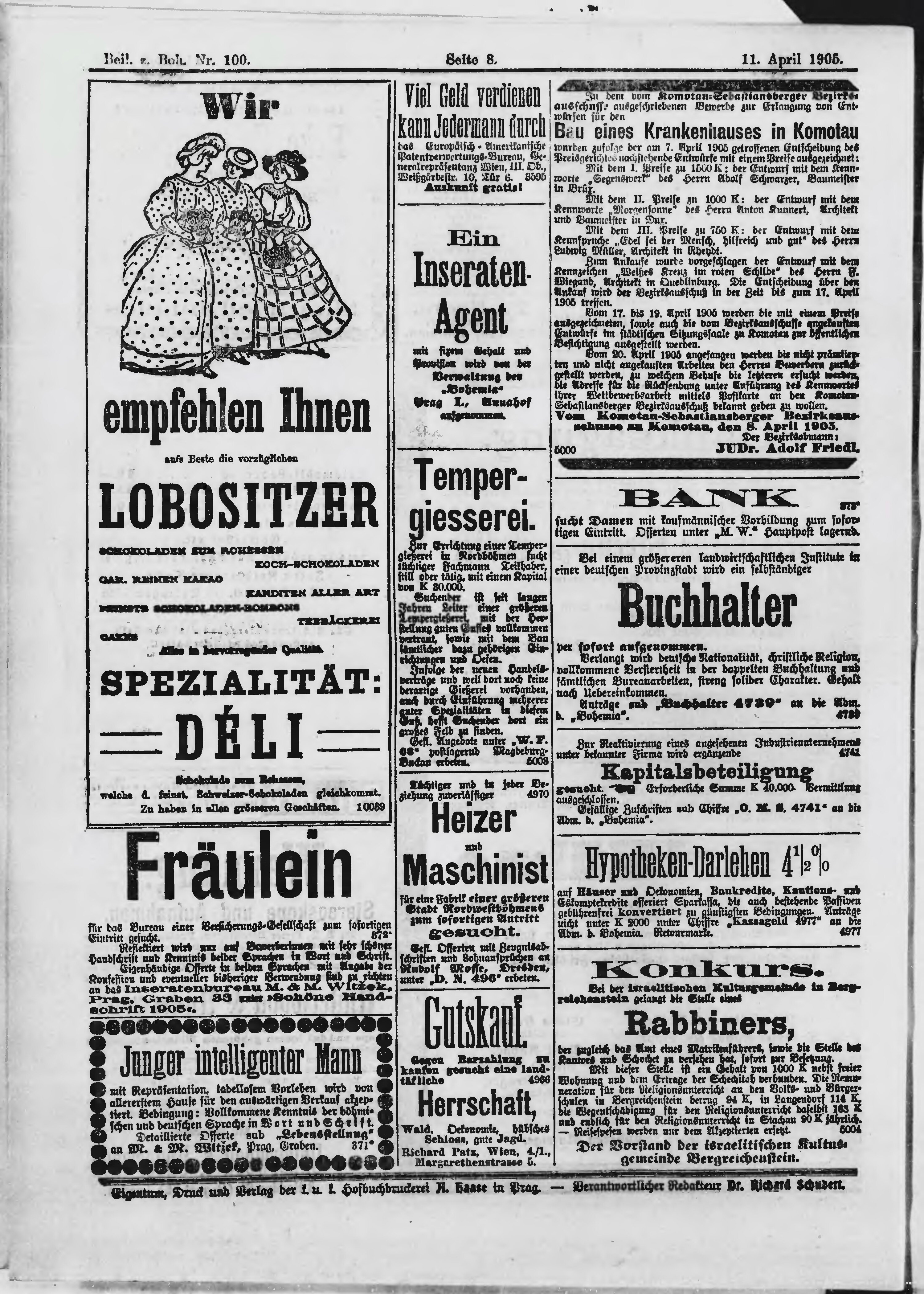 * Datum vydání výtisku: 11.4.1905 Číslo výtisku: 100 Typ výtisku: příloha